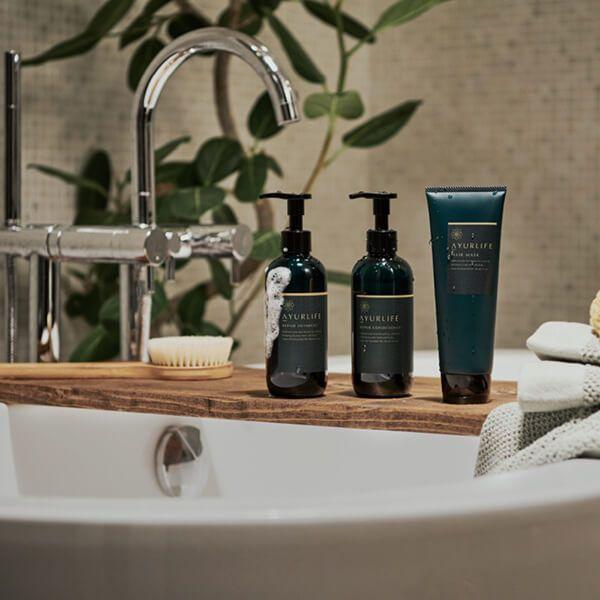 生活の木アーユルライフリペアコンディショナーは、16種のハーブエキスと13種のアミノ酸(すべて保湿成分)を配合し、髪のダメージを集中ケアするコンディショナーです。パサつきや広がりの気になる髪に、しっとりとしたうるおいとツヤを与え、指通りの良いしなやかな状態へと導きます。オリエンタルジャスミンの華やかで深みのある香りが、バスタイムを贅沢な癒やしの時間に変えてくれます。