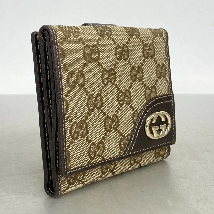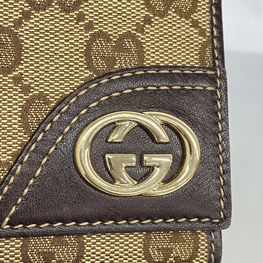 【6db1940-k】グッチ 財布 GGキャンバス インターロッキングG 181594 キャンバス ブラウン ゴールド金具【中古】レディース