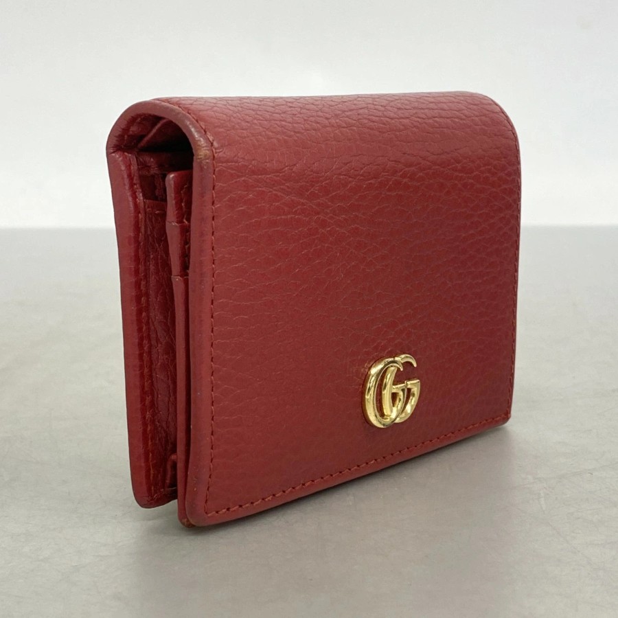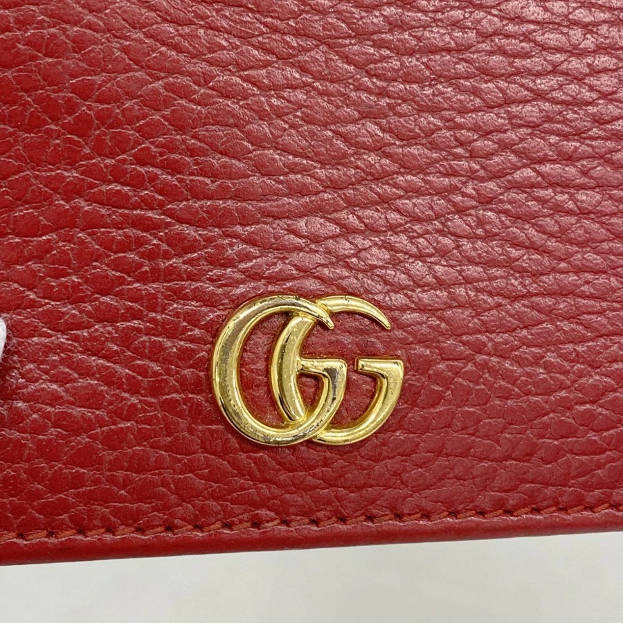 【6dd4119-k】グッチ 財布 GGマーモント 456126 レザー レッド ゴールド金具【中古】レディース