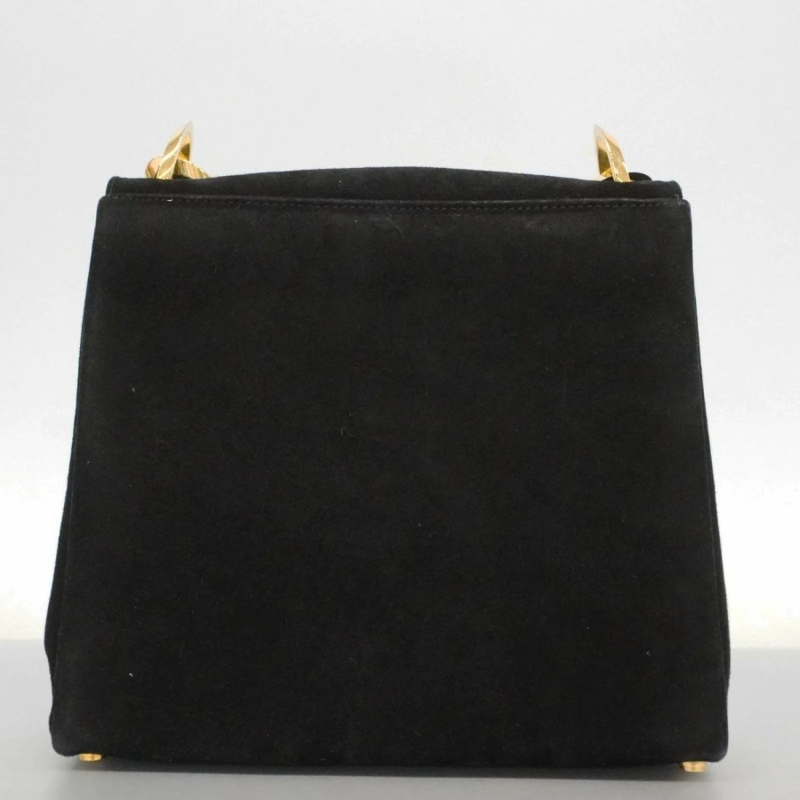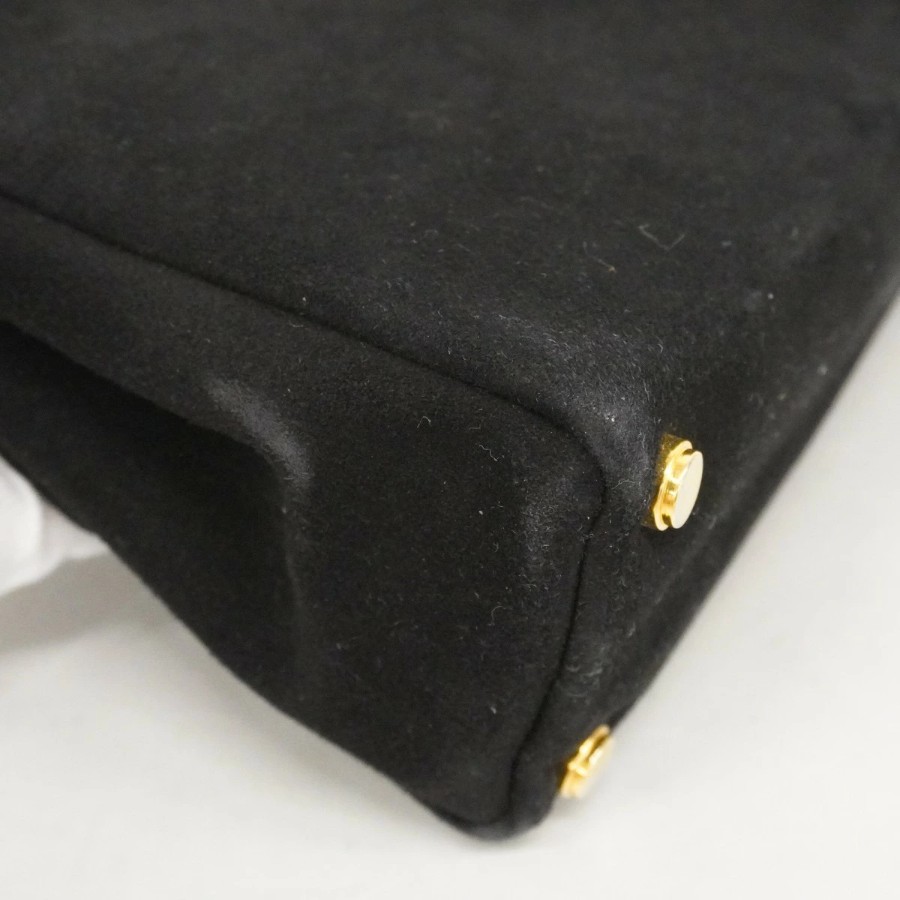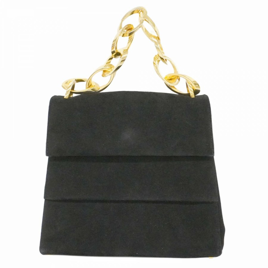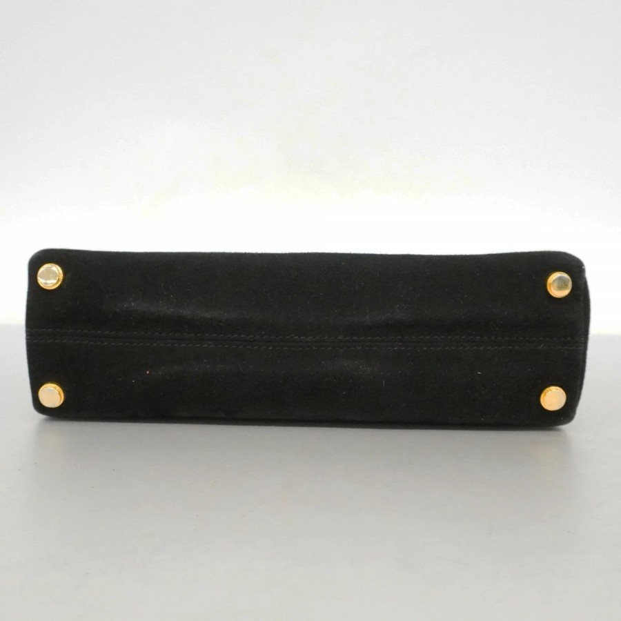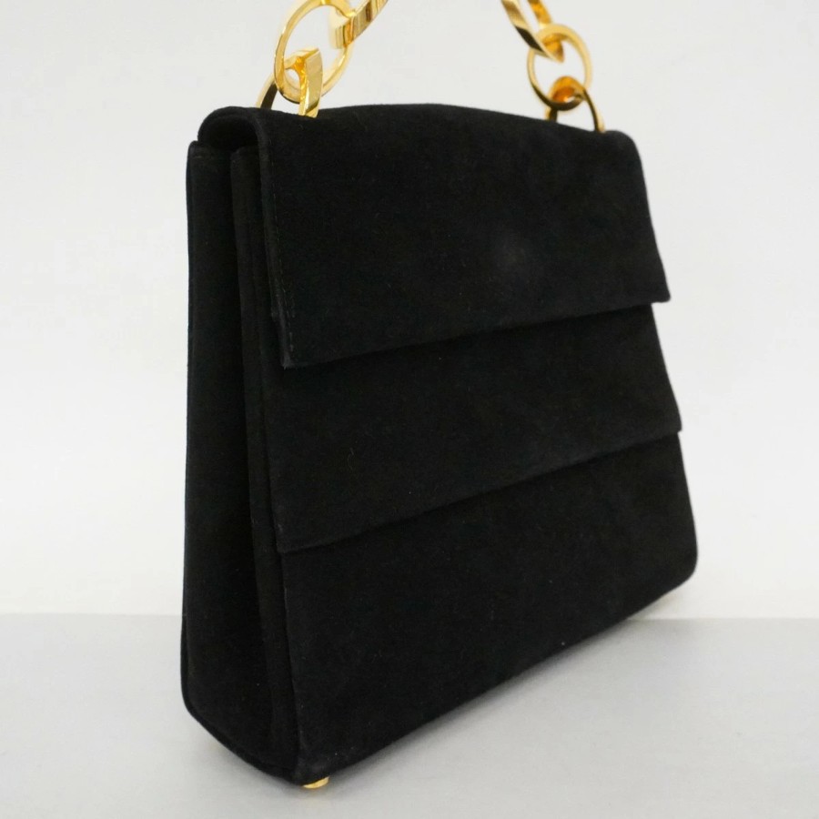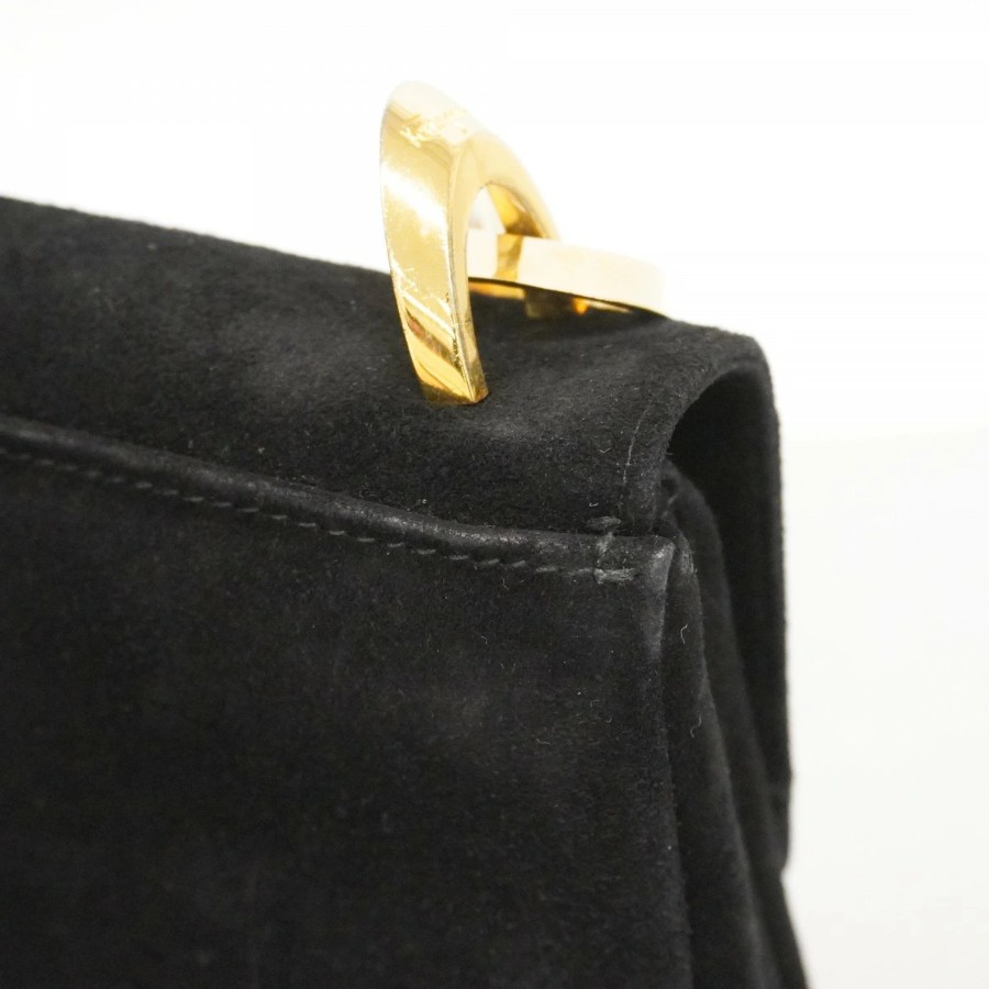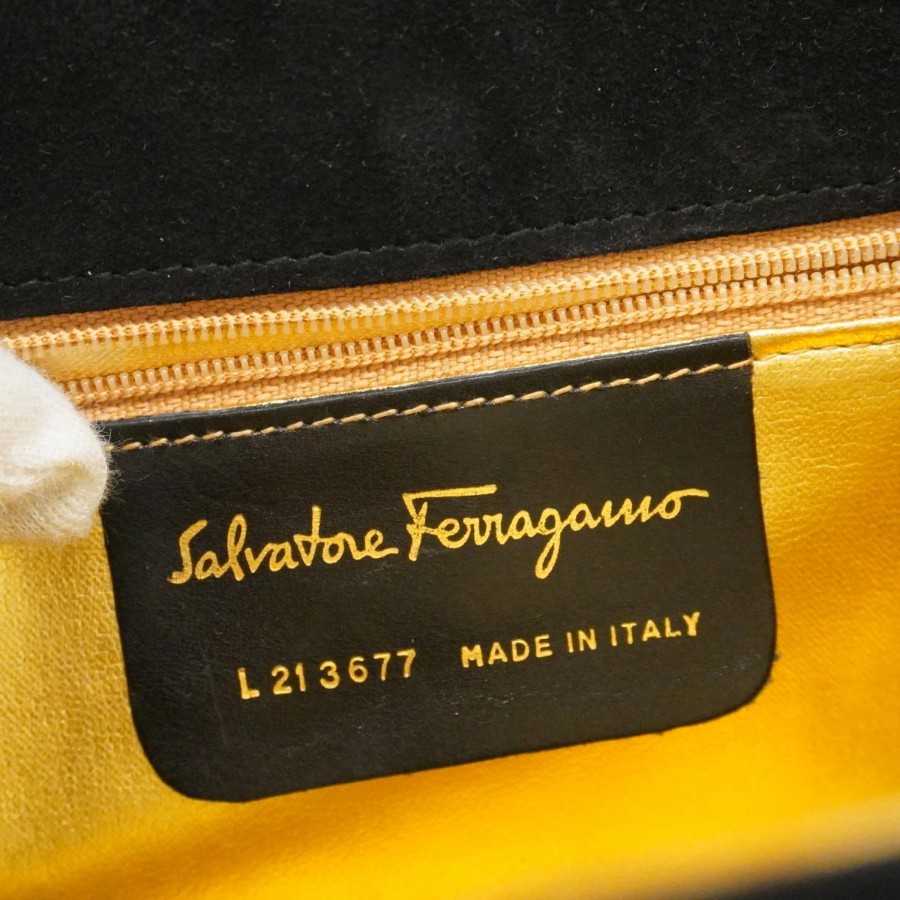 【6dd4300】サルヴァトーレフェラガモ ハンドバッグ スウェード ブラック ゴールド金具【中古】レディース