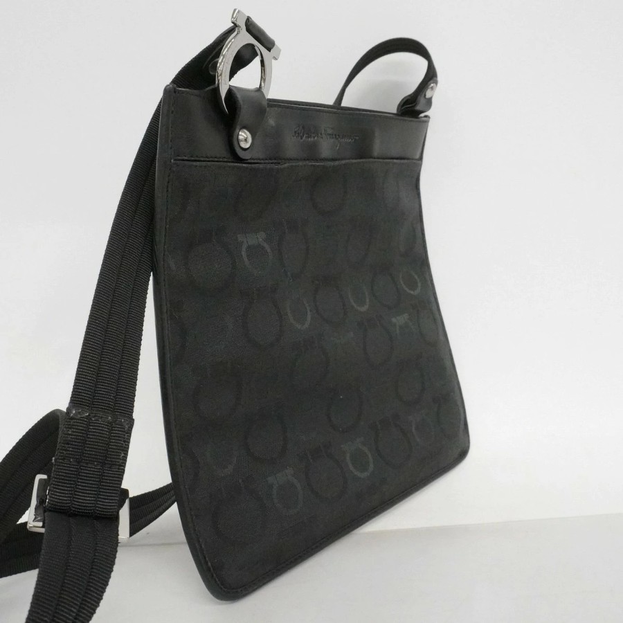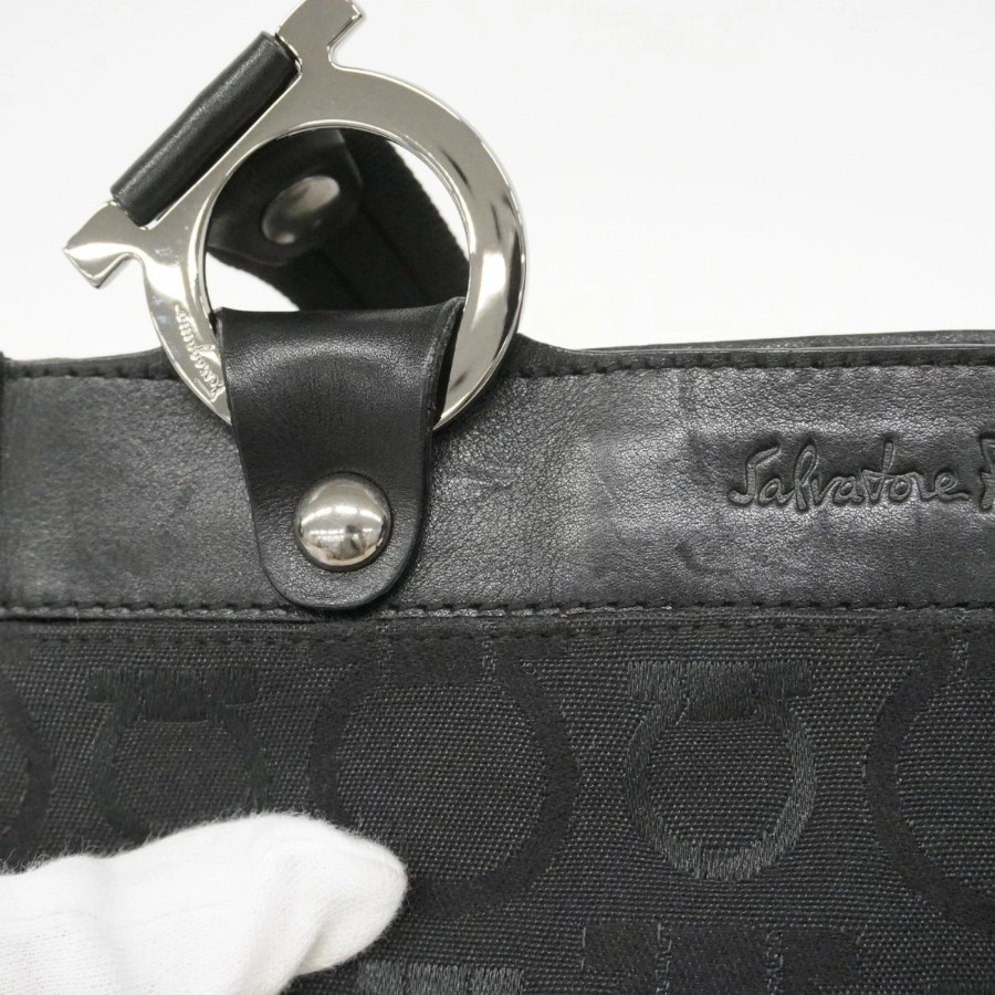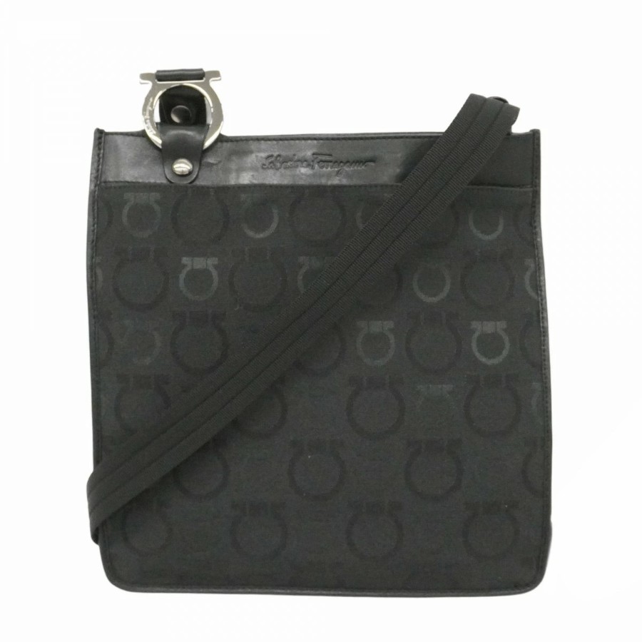 【6dd4301】サルヴァトーレフェラガモ ショルダーバッグ ガンチーニ キャンバス ブラック シルバー金具【中古】レディース