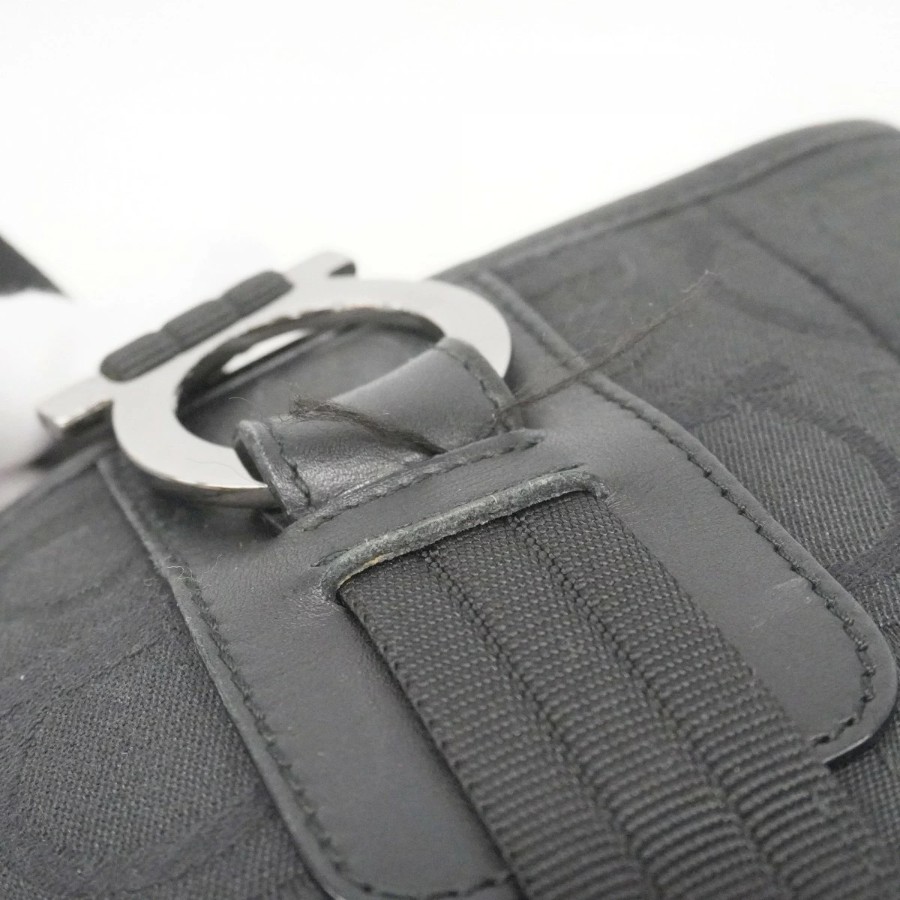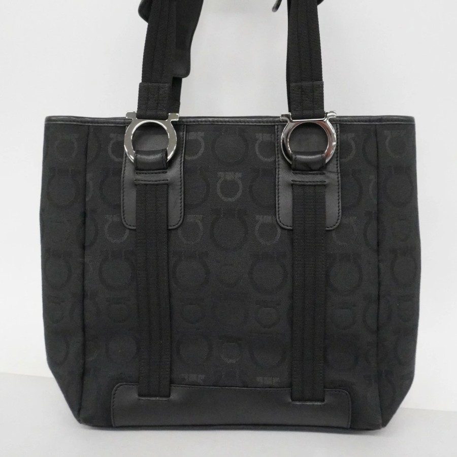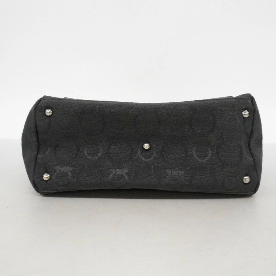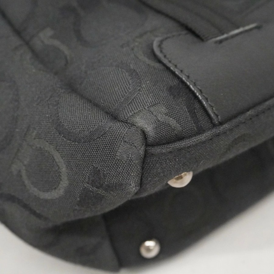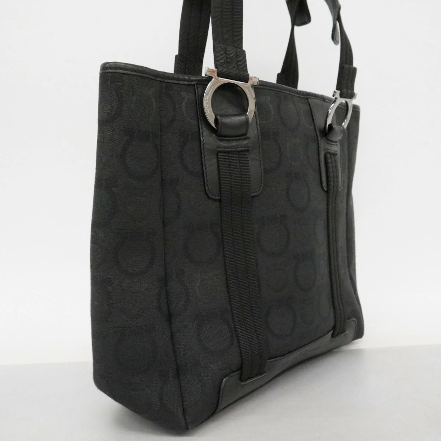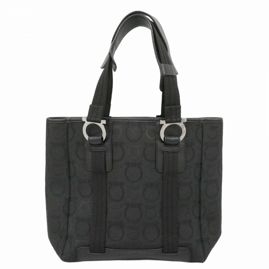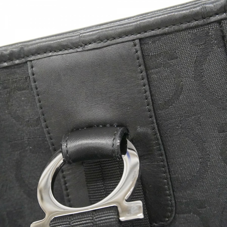 【6dd4359】サルヴァトーレフェラガモ トートバッグ ガンチーニ キャンバス ブラック シルバー金具【中古】レディース