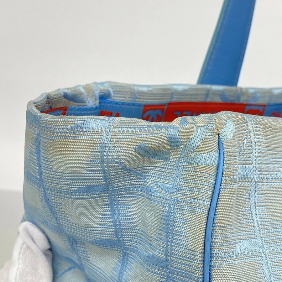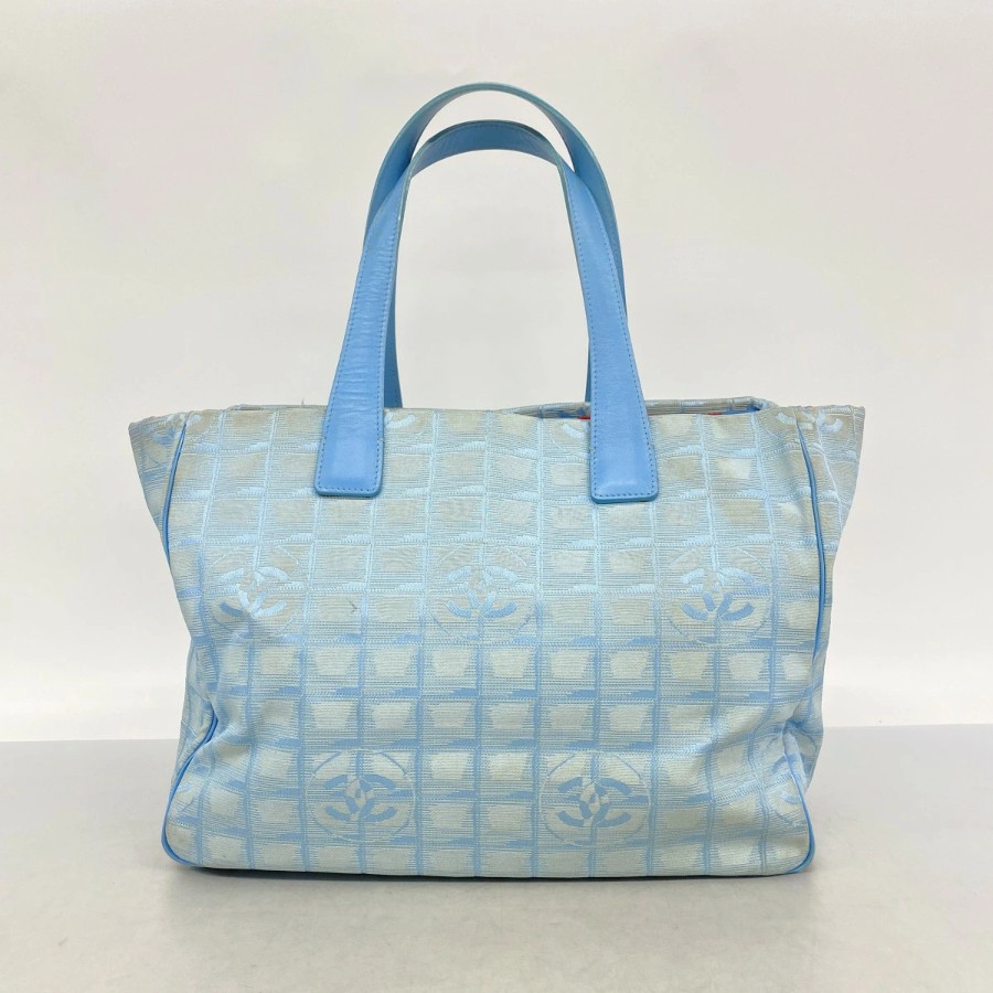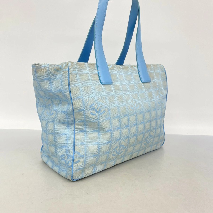 【6dd4721】シャネル トートバッグ ニュートラベル ナイロン ブルー シルバー金具【中古】レディース