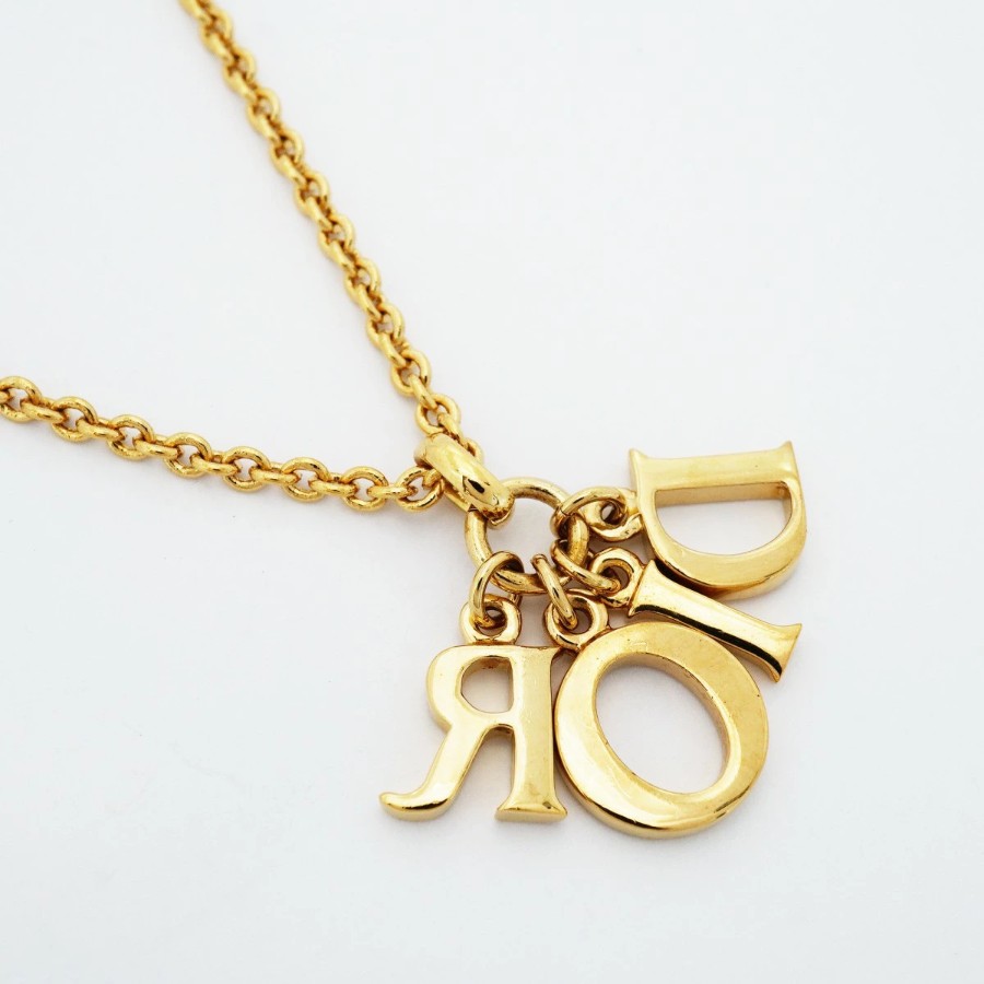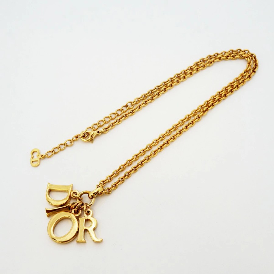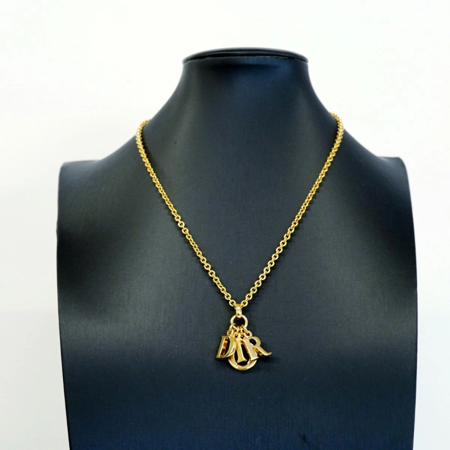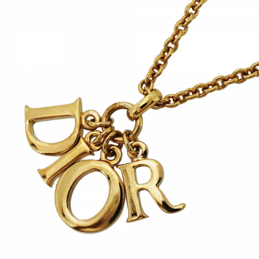 【6jdb0347-k】クリスチャンディオール ネックレス ディオールロゴ GPメッキ ゴールド【中古】レディース
