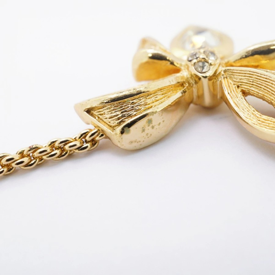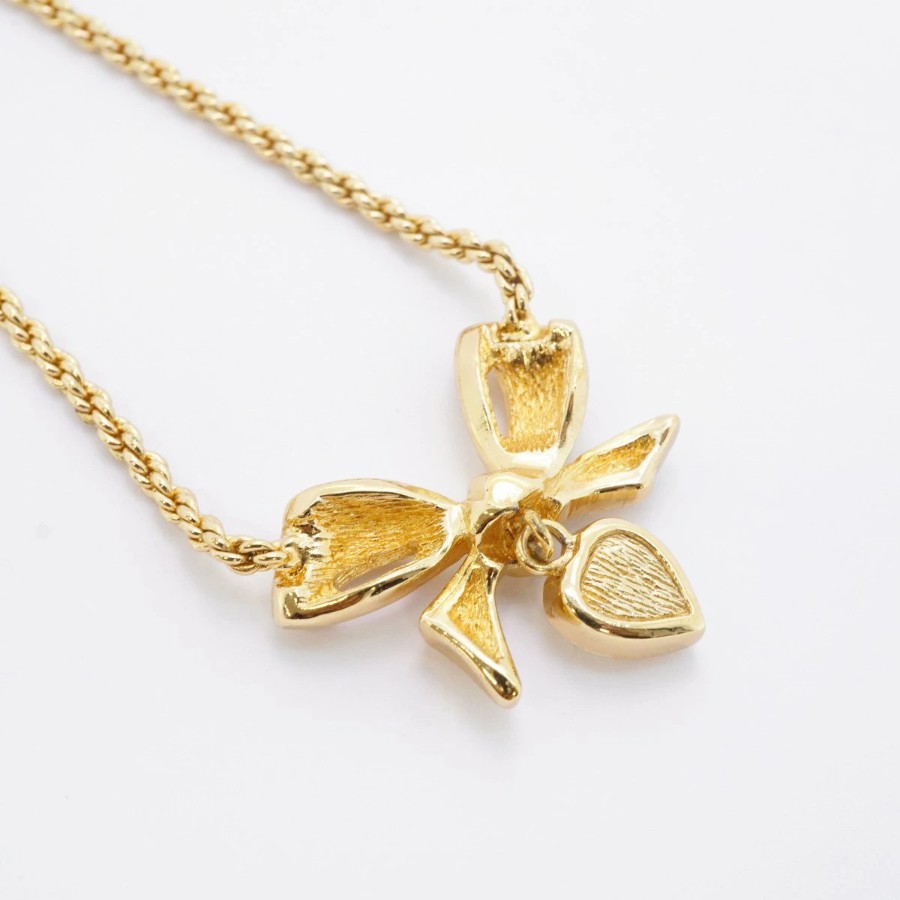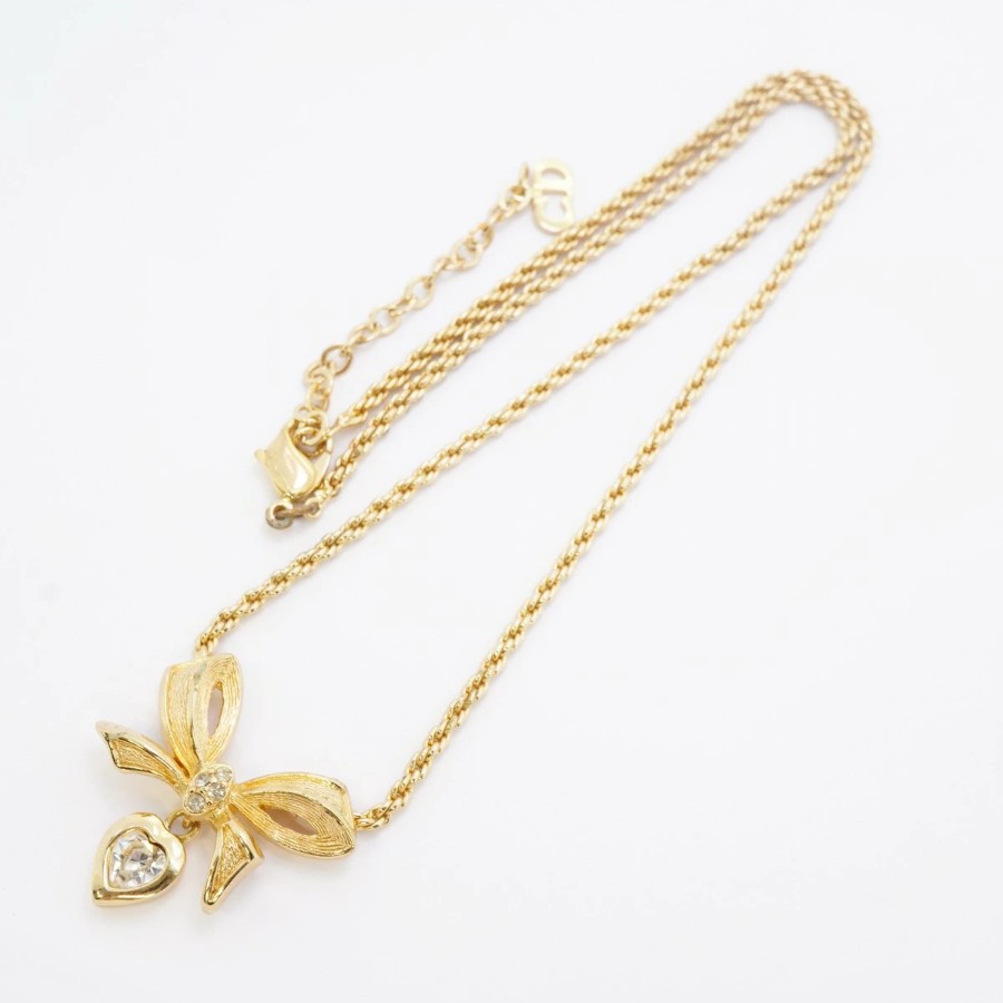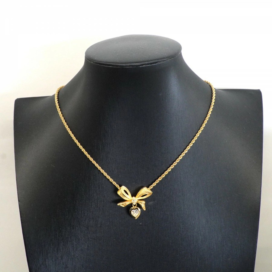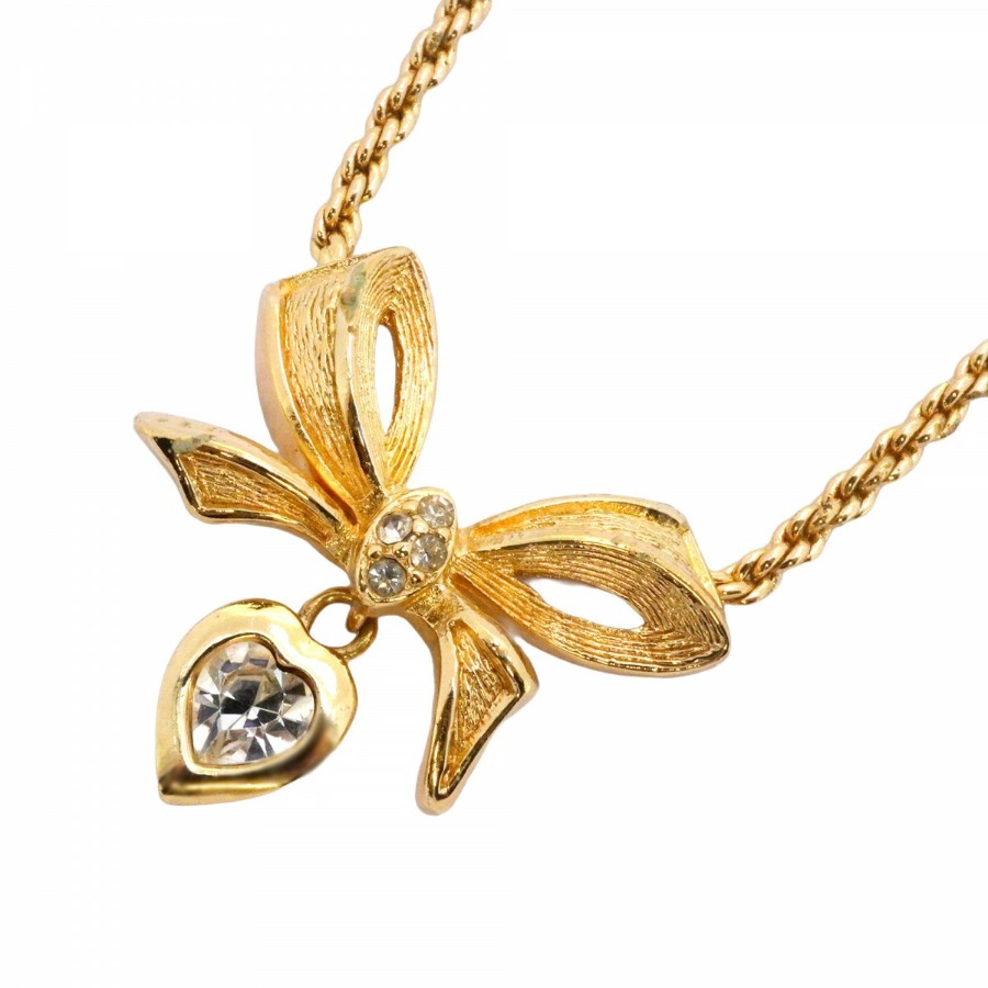 【6jdb0412-k】クリスチャンディオール ネックレス ハートモチーフ リボンモチーフ GPメッキ ラインストーン ゴールド【中古】レディース