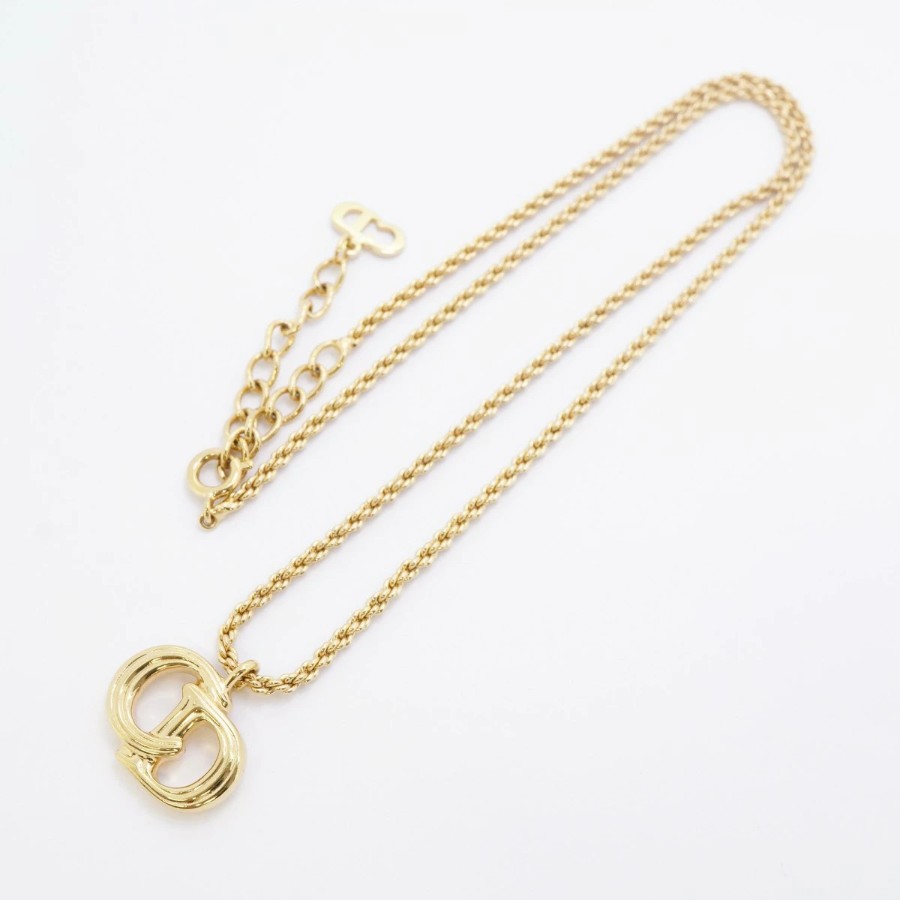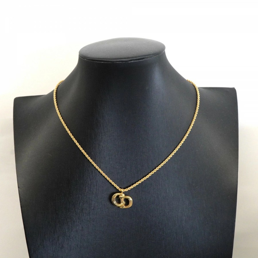 【6jdb0413-k】クリスチャンディオール ネックレス CDロゴ GPメッキ ゴールド【中古】レディース