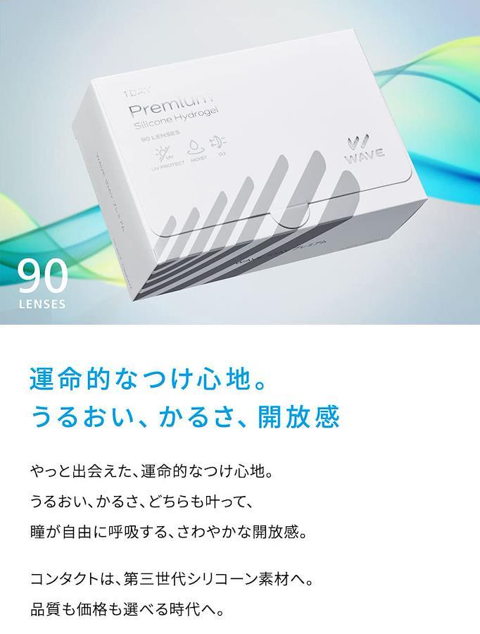 WAVEシリーズから第三世代シリコーンハイドロゲル素材のレンズが登場!高い酸素透過率と柔軟性を実現した、瞳に優しい1日使い捨てレンズです。うるおい成分2種、ヒアルロン酸とアルギン酸を保存液に配合。レンズ表面が瞳を優しく包み込みます。 素材:シリコンハイドロゲル DIA:14.1mm 含水率:47%(低含水)。乾燥に強いシリコンハイドロゲル素材&水分量が少ないことで、長時間装用しても蒸発した水分(涙)を奪いすぎることがないため、乾燥しづらいレンズです。 枚数:90枚入り 1箱 UVカット:あり 医療機器承認番号:23000BZX00253A04 コンタクトレンズは高度管理医療機器です。必ずご購入前に眼科医の検査・処方を受けてからお求めください。 ご使用の前に必ず添付文書をよく読み、眼科医の指示を守り正しくご使用ください。