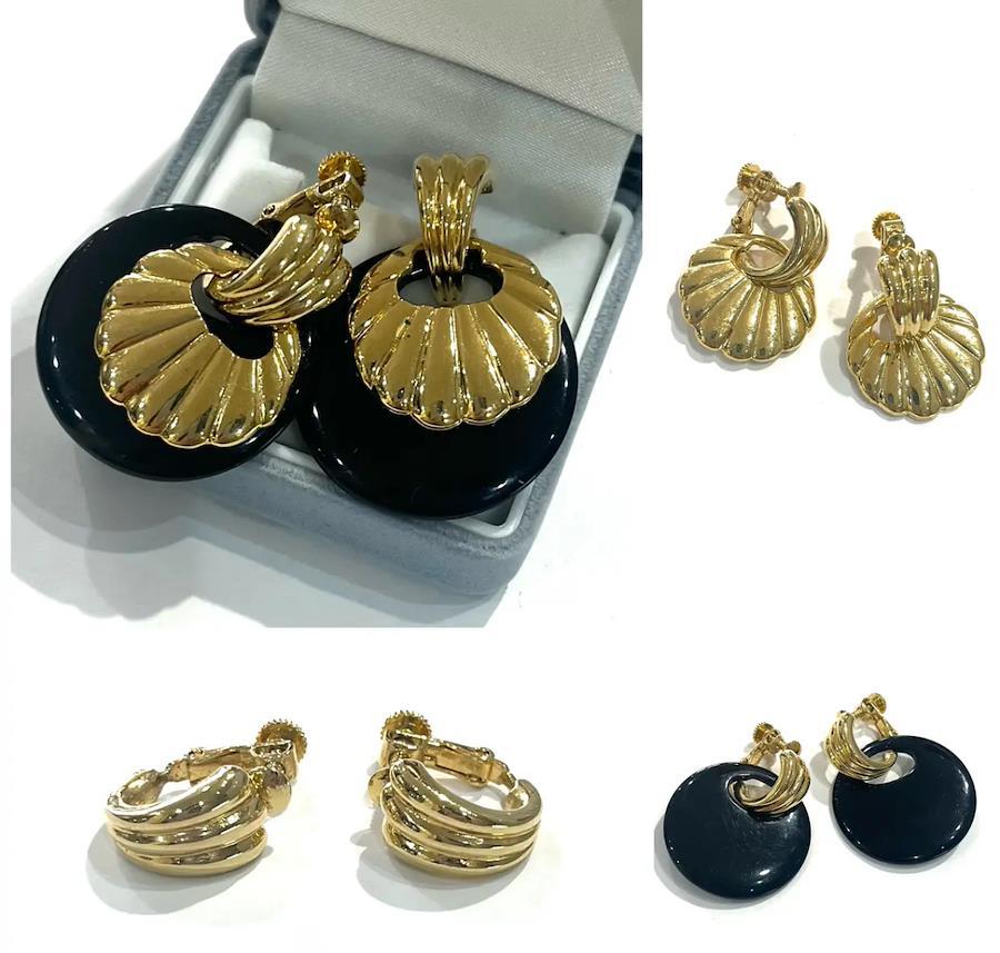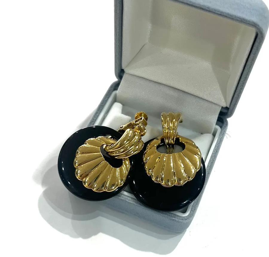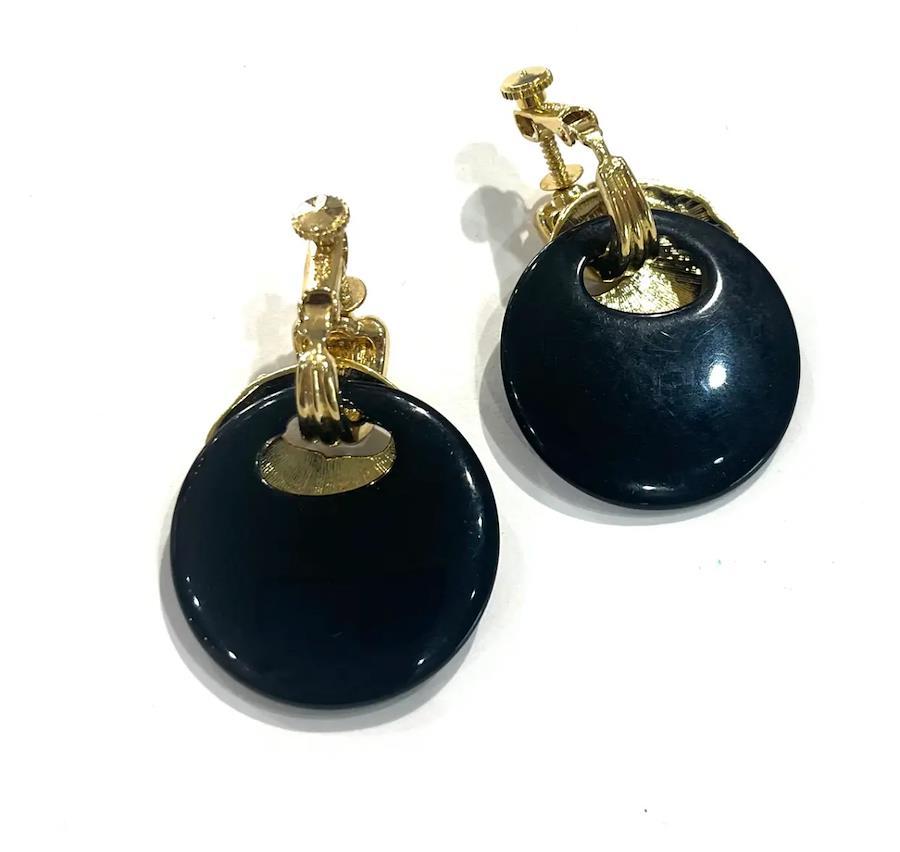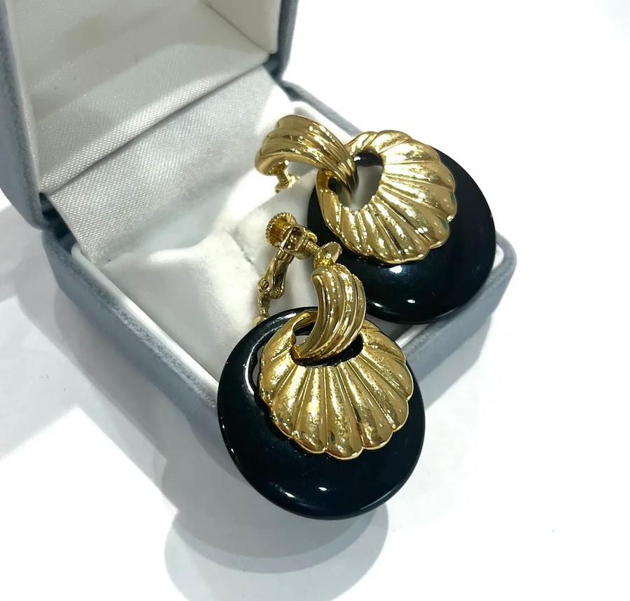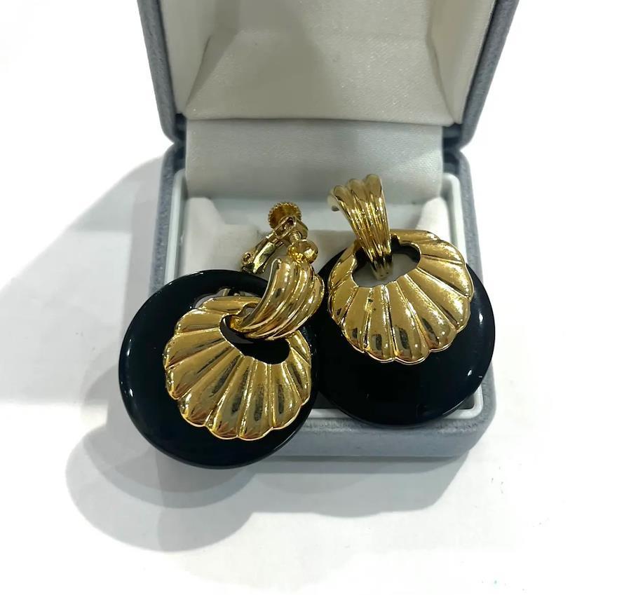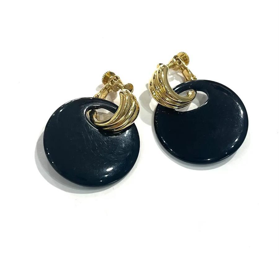 AVONイヤリング/ヴィンテージイヤリング/ブラックイヤリング/ゴールドイヤリング/大ぶりイヤリング/モードアクセサリー/レトロアクセサリー/コスチュームジュエリー/アメリカンヴィンテージ/40代ファッション/50代ファッション/一点物アクセサリー/クラシックコーデ/フォーマルアクセサリー/大人アクセサリー
