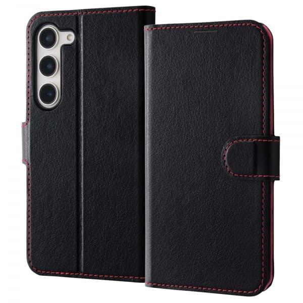 【Galaxy S23】手帳型レザーケース シンプル マグネット ブラックレッド RT-GS23ELC1/BR