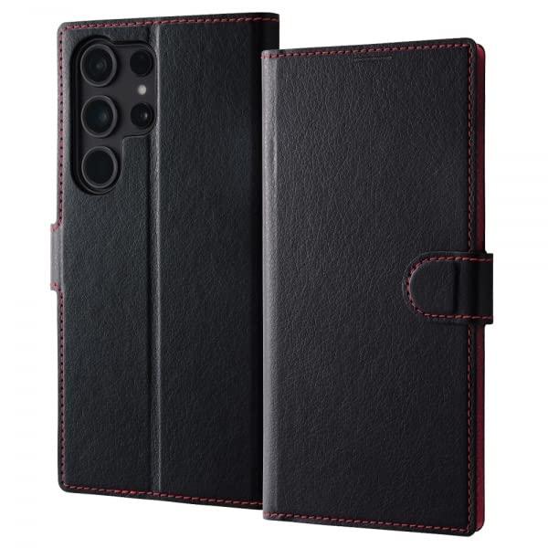 【Galaxy S23 Ultra】手帳型レザーケース シンプル マグネット ブラックレッド RT-GS23UELC1/BR