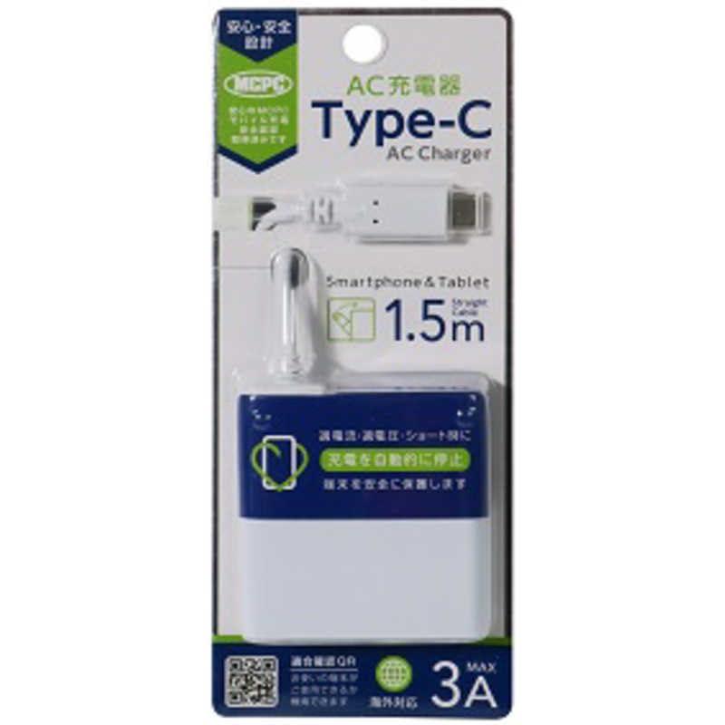 【MCPC認証】Type-C ケーブル一体型AC充電器/3A/ストレートケーブル1.5m ホワイト AC-C30MPW [15W]