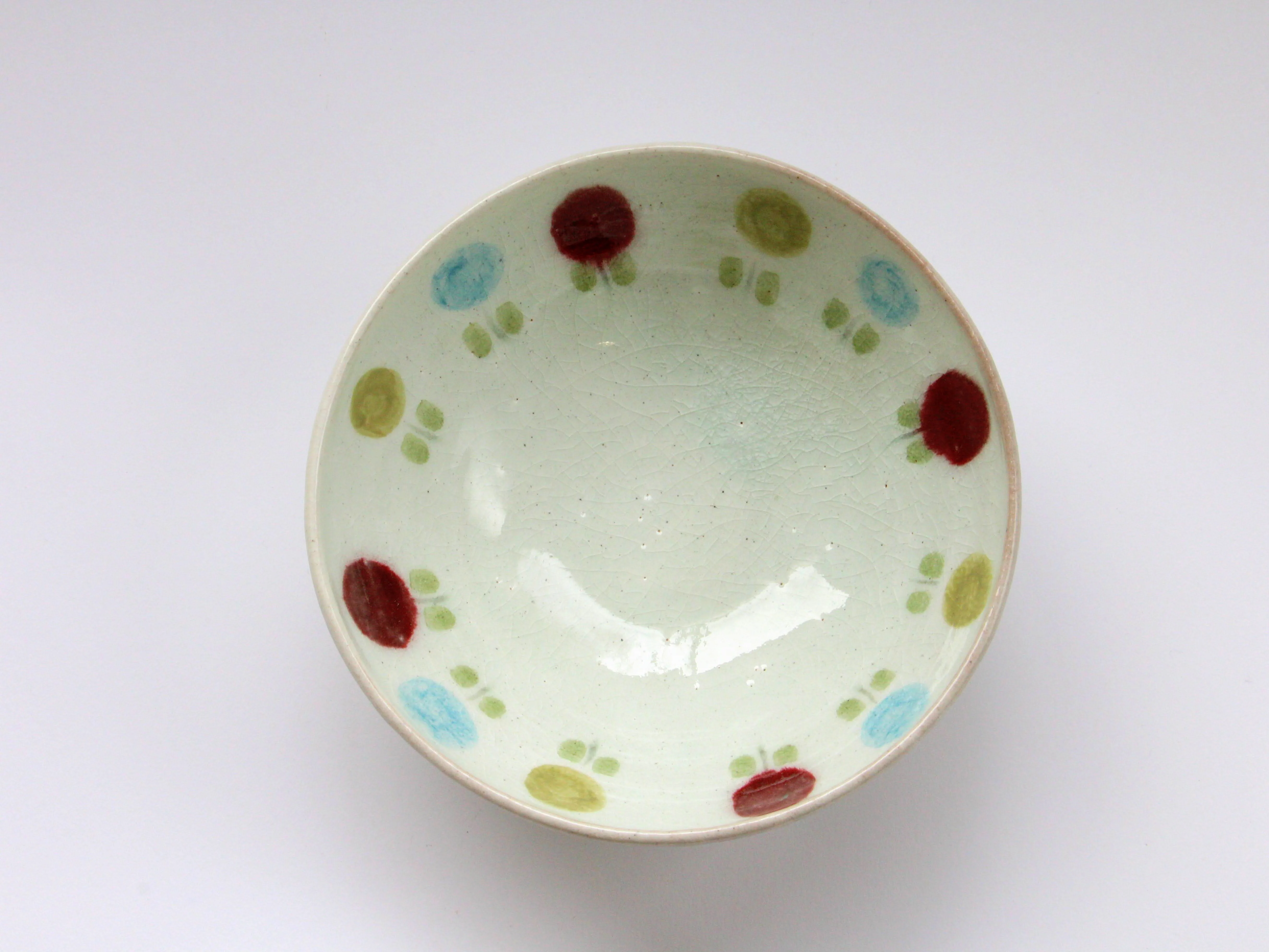 【One-of-a-kind Japanese Artisanal Handcrafted Piece】 5.5-Sun Round Pot with Three-Color Flower Pattern - Crafted By Iwao Pottery