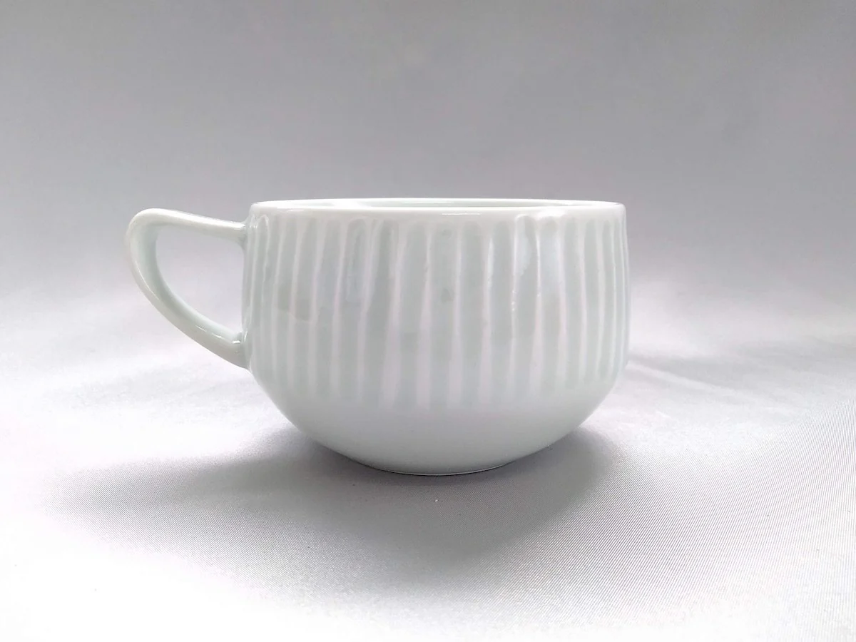 【One-of-a-kind Japanese Artisanal Handcrafted Piece】 Ash Glazed Ridged Soup Cup - Crafted By Pottery Ao