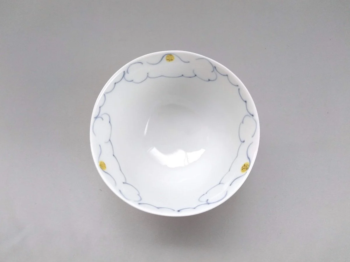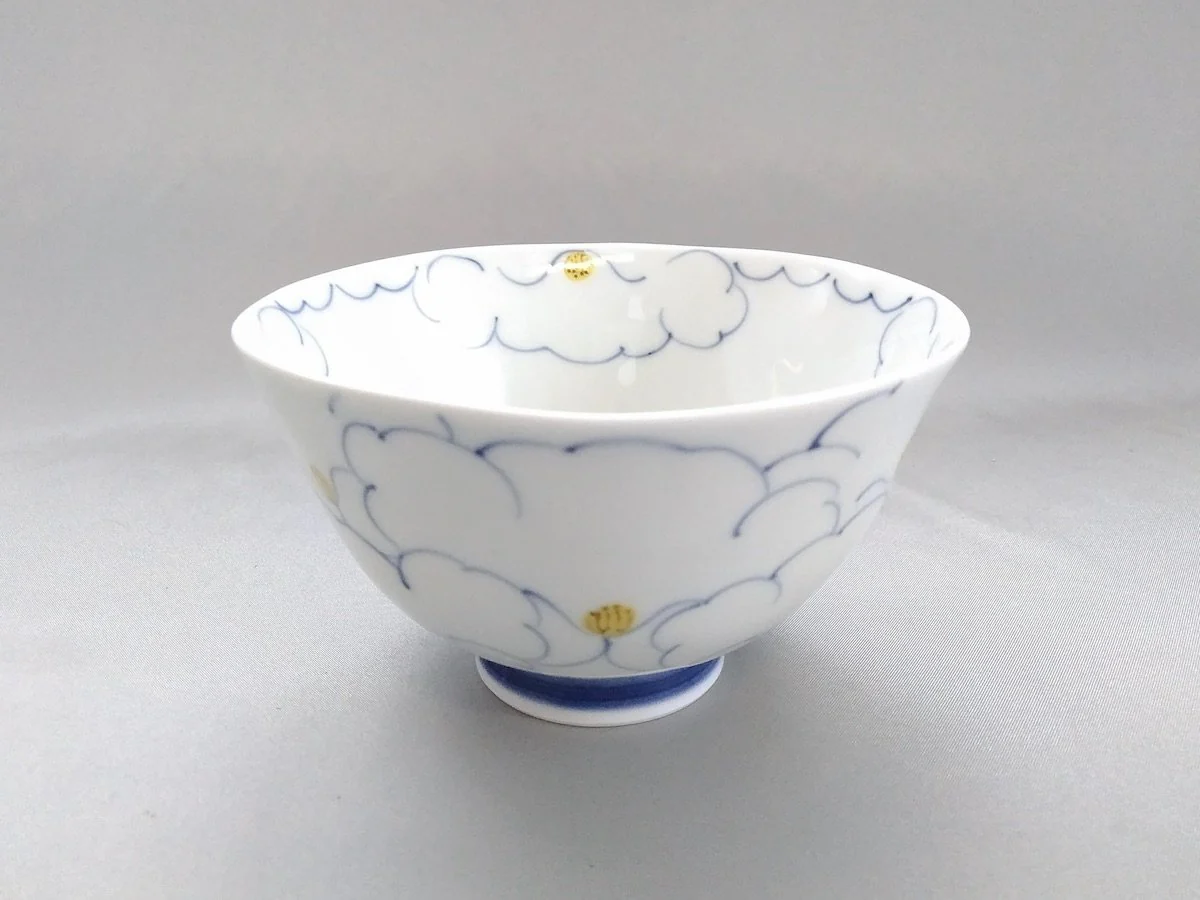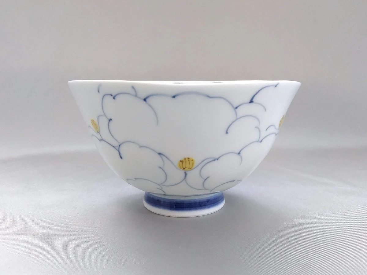 【One-of-a-kind Japanese Artisanal Handcrafted Piece】 Flower-filled Rice Bowl Blue - Crafted By Koso Kiln