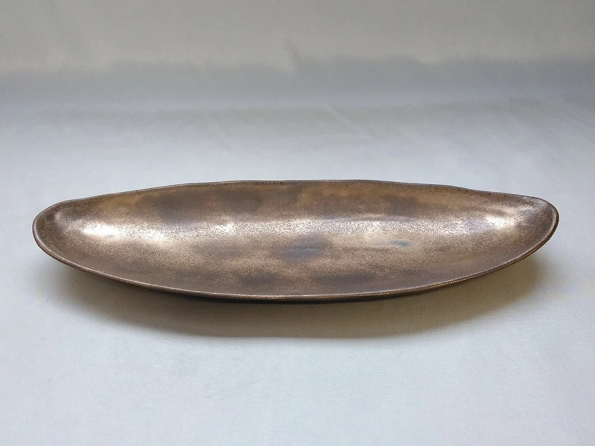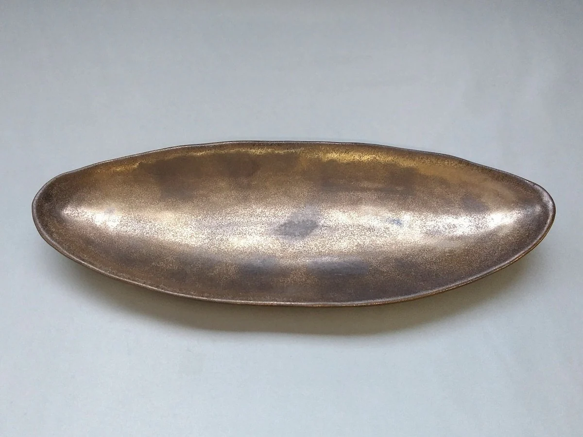 【One-of-a-kind Japanese Artisanal Handcrafted Piece】 Gold Clay Glazed boat-Shaped Plate - Crafted By Kikaku Pottery