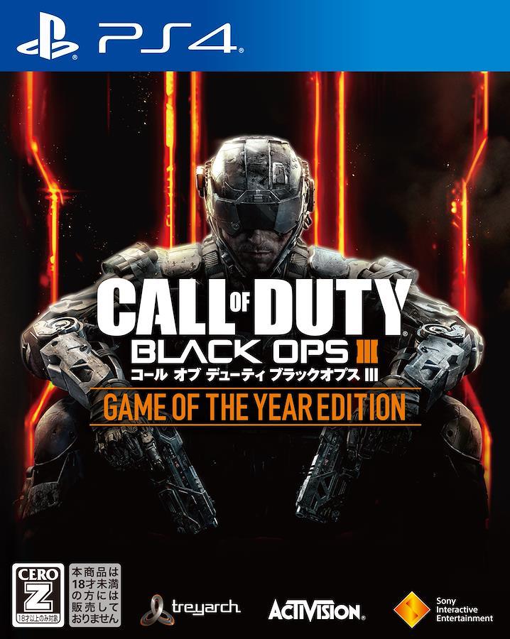 【内容物】 ・PS4用ソフトウェア『コール オブ デューティ ブラックオプスIII』 (本編Disc) ・シーズンパス プロダクトコード ・「コール オブ デューティ ブラックオプス III Awakening DLC」 (DLC 1) ・「コール オブ デューティ ブラックオプス III Eclipse DLC」 (DLC 2) ・「コール オブ デューティ ブラックオプス III Descent DLC」 (DLC 3) ・「コール オブ デューティ ブラックオプス III Salvation DLC」 (DLC 4) ・ゾンビモード用マップ「ザ・ジャイアント」 ・Awakening テーマ ・Eclipse テーマ ・Descent テーマ ・Salvation テーマ ・シーズンパス テーマ