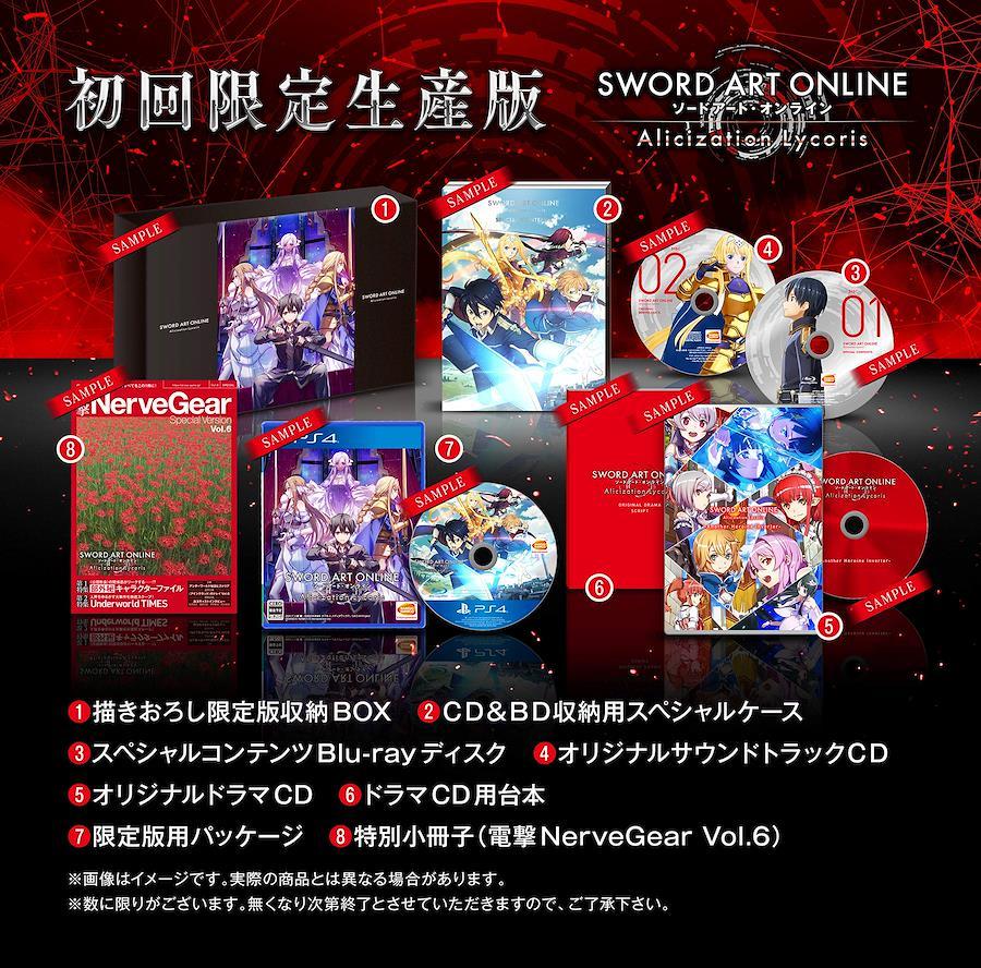 【初回限定生産版】1. 描きおろし限定版収納BOX 2. CD&BD収納用スペシャルケース 3. スペシャルコンテンツBlu-rayディスク 4. オリジナルサウンドトラックCD 5. オリジナルドラマCD 6. ドラマCD用台本 7. 限定版用パッケージ 8. 特別小冊子(電撃NerveGear Vol.6)SAOゲーム最新作の舞台はアリシゼーション編。主人公キリトを操作し、仮想世界《アンダーワールド》を冒険しよう!※本製品をプレイするには、ゲーム内に表示されるサービス利用規約に同意する必要があります。詳しくは公式ホームページをご確認ください。※画像は開発中のものです。実際の製品とは異なる場合があります。SAOゲーム最新作の舞台はアリシゼーション編。主人公キリトを操作し、仮想世界《アンダーワールド》を冒険しよう!※本製品をプレイするには、ゲーム内に表示されるサービス利用規約に同意する必要があります。詳しくは公式ホームページをご確認ください。※画像は開発中のものです。実際の製品とは異なる場合があります。
