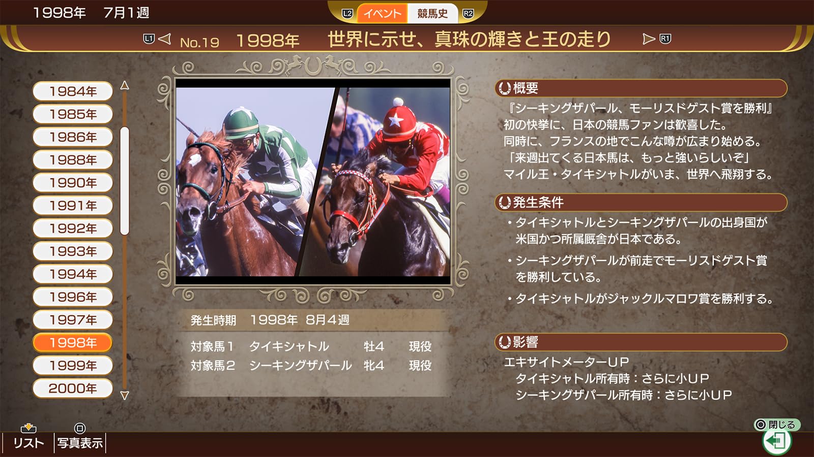 3.日本競馬史を追体験できる「競馬ヒストリア」半世紀以上にわたる日本競馬の軌跡を、誰もが楽しみながら体感できる史実イベント「競馬ヒストリア」が新登場。優駿たちの宿命のドラマを描く多彩なイベントは、ファンの盛り上がりにも影響し、競馬ブームへとつながることも。