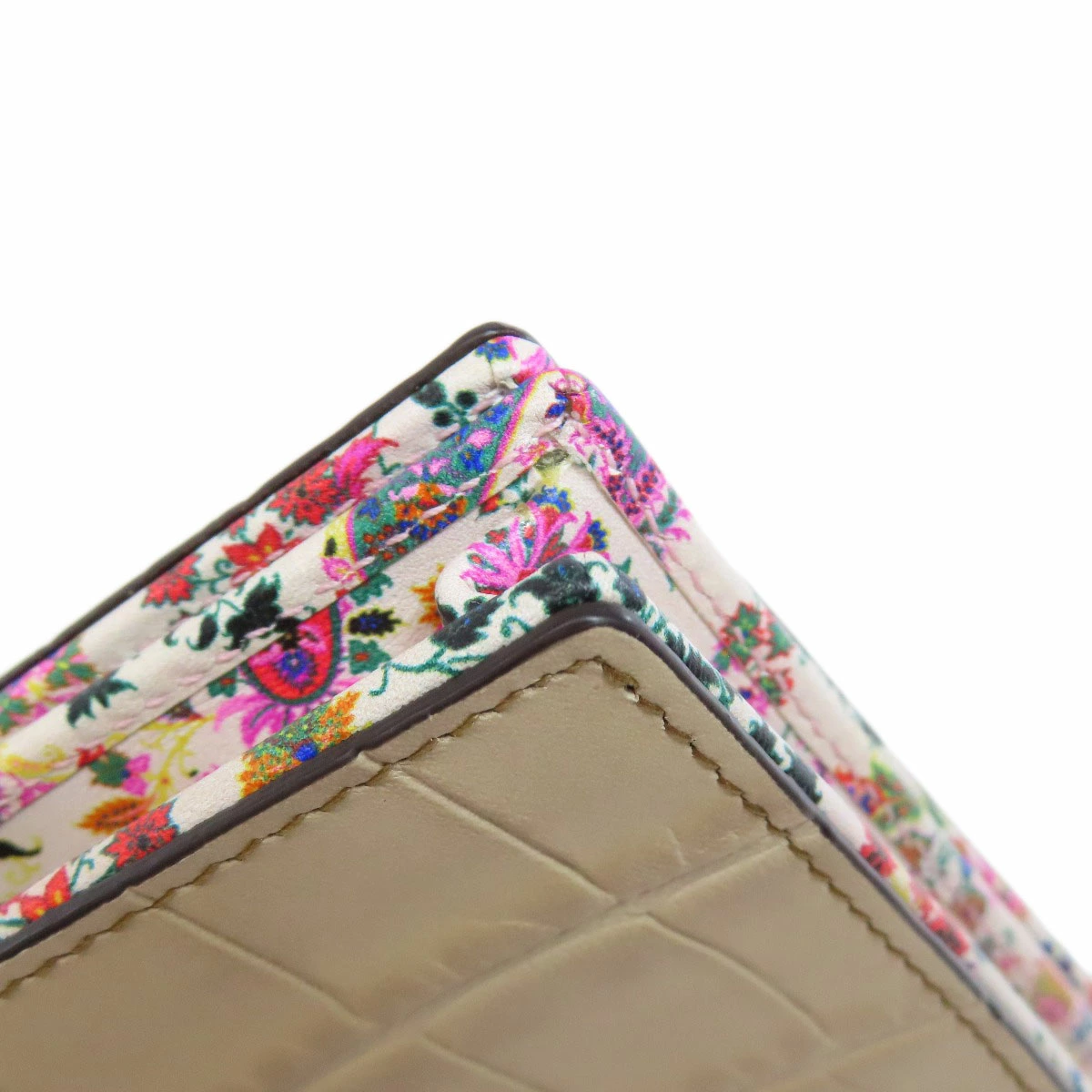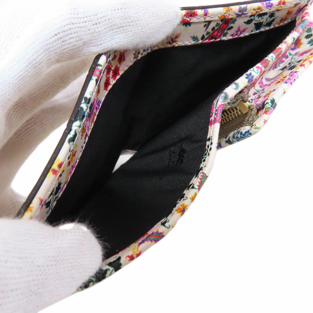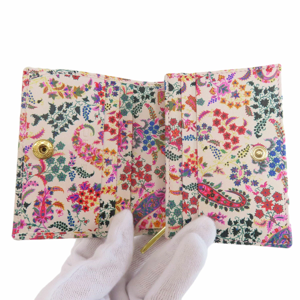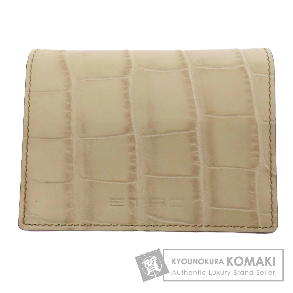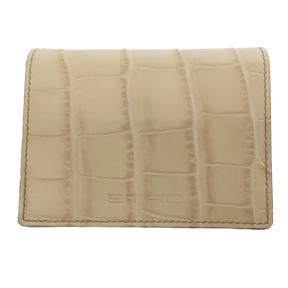 レディース二つ折り財布(小銭入れあり)ETROカラー:ベージュ系レザーコンディションAランク