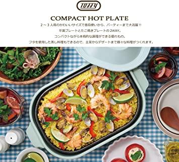 通常1-5営業日で発送:2~3人用のかわいいサイズ。 普段使いから、パーティーまで大活躍のコンパクトホットプレート!/●脱着式の平面プレートとたこ焼きプレートは交換可能。/●コンパクトながら本格的な調理ができる優れものです。/●フタを使用した蒸し料理もできるので、主菜からデザートまで、様々なできたて料理をその場で味わうことができます。/本体寸法:約358(W)×121(H)×221(D)mm