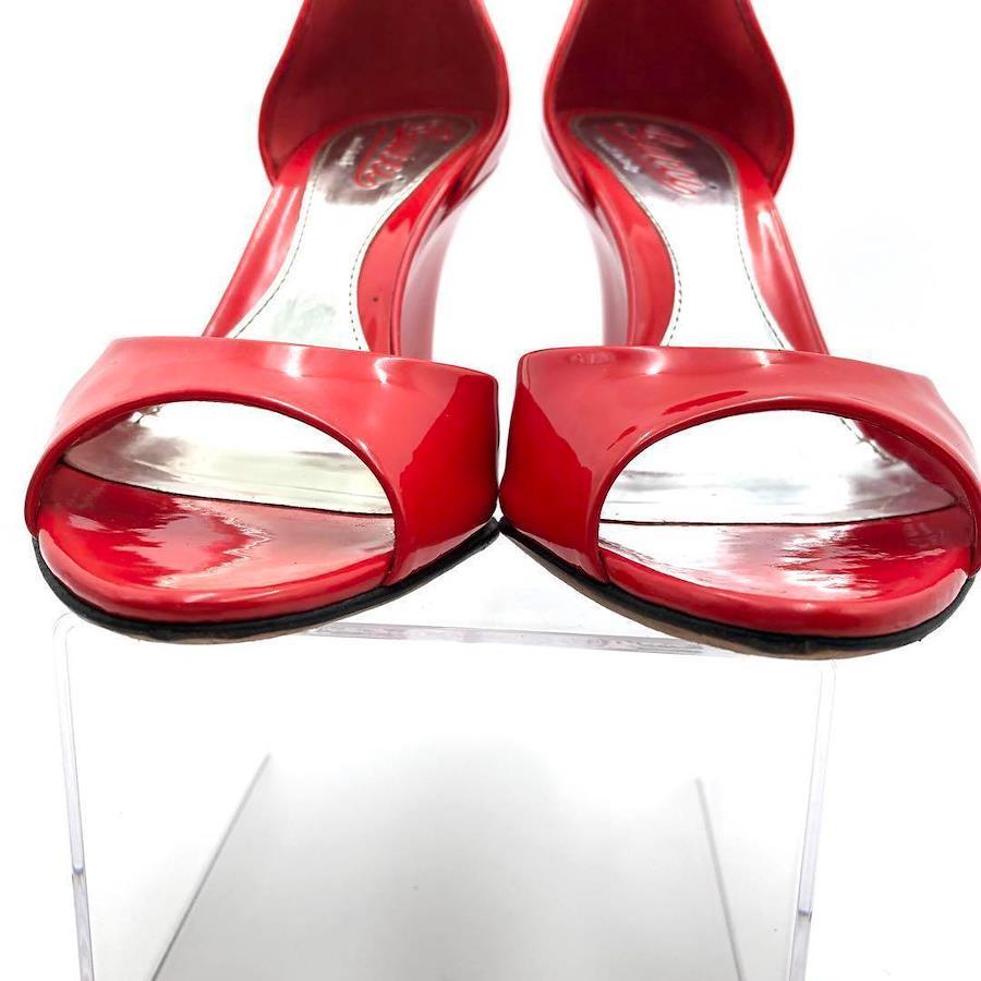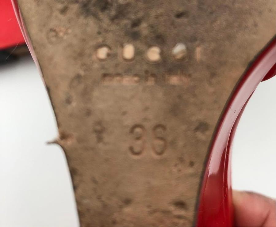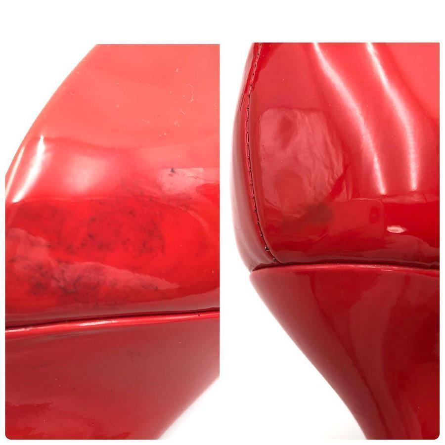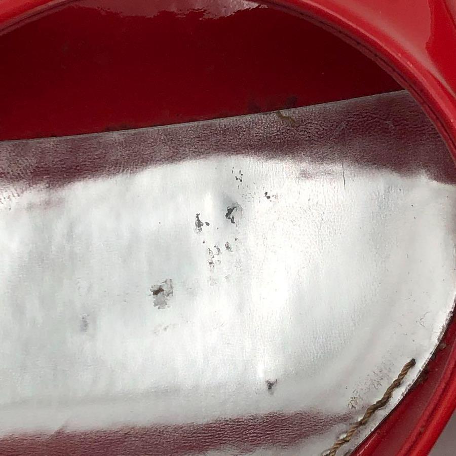 【サイズ】サイズ 36 / ヒール 8.5cm【付属品】箱 / 保存袋2つ / 小さな冊子【素材】エナメル【状態】左かかと部外側、側面外側あたりと右かかと後ろ部に変色あり、ソール剥がれあり(各画像参照下さい) ソールはそのままでもご使用できますが接着頂いた方が確実かと思います。大きな傷などは見当たらず、まだまだご愛用頂けるお品かと思います。【USED品について】写真を拡大するなどしてしっかりご覧になったうえでご検討下さい。 中古品ですので小傷等お気になされる神経質な方はご遠慮ください。 新品、展示品レベルのきれいな状態のお品物でも一旦はどなたかの手に渡ったものであることをご理解の程お願いいたします。 前所有者のメンテナンス状況、保管状況はわかりかねます点ご了承下さい。