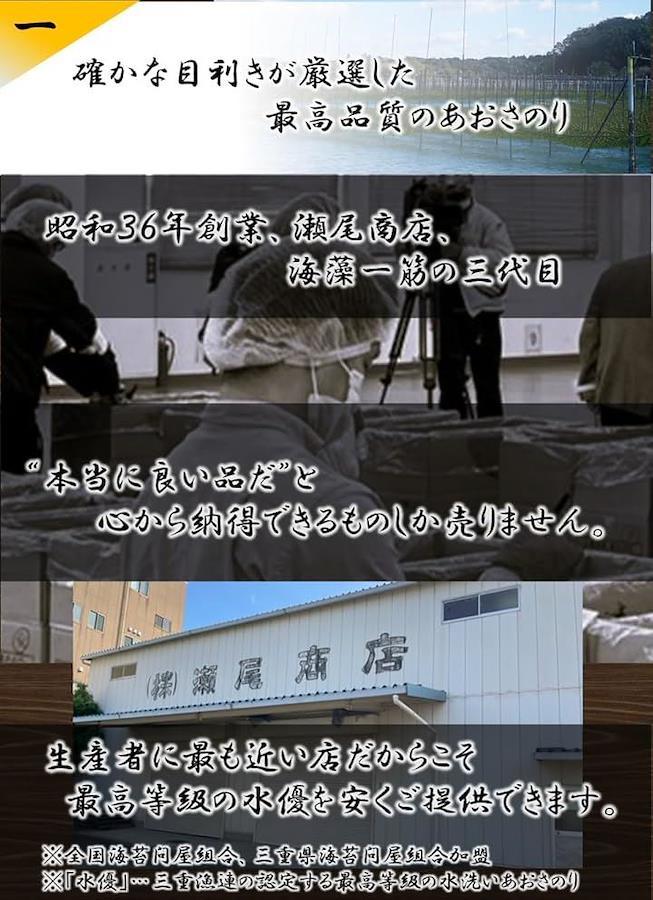 その伊勢志摩で、昭和36年創業、海藻一筋の瀬尾商店3代目が、厳しい目で選んだ最上級の水洗いあおさのり。