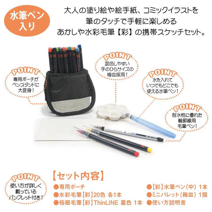 気軽に水彩画を楽しめる、あかしや水彩毛筆【彩】のスケッチセットです。