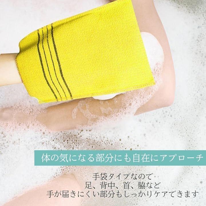 手に装着することで、細やかな力加減が可能になり、脇や膝、太ももの裏などの見えにくい部分も優しく、しかし徹底的に洗浄します。