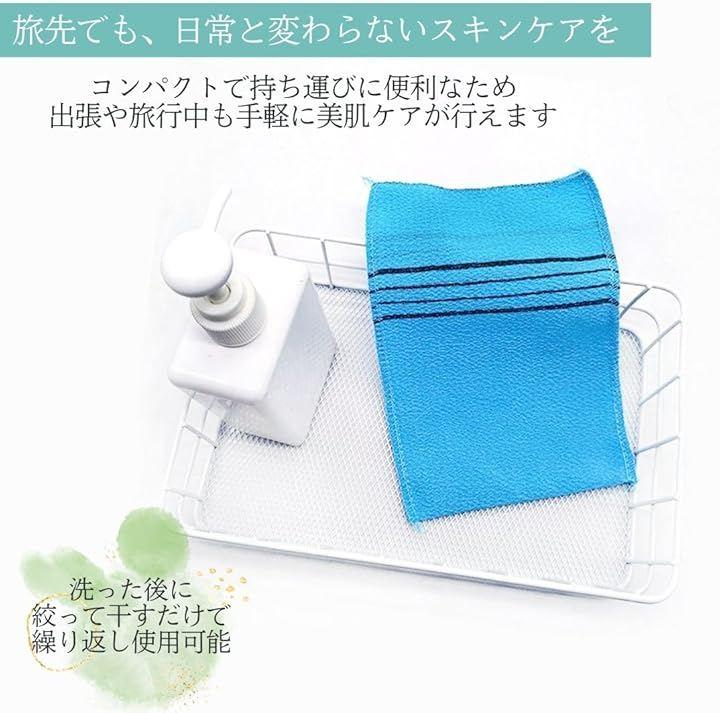 「コンパクトケア、あなたの美肌を守る」この革新的な手袋型あかすりタオルは、ショートタイプで手の届きにくい部位も楽にケア可能。