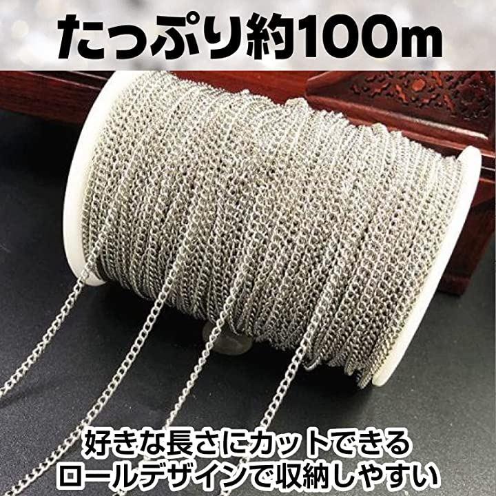 「サイズ」 100m(チェーン1個分)縦約2.5mm、幅約2mm 「カラー」 シルバー「内容」1巻