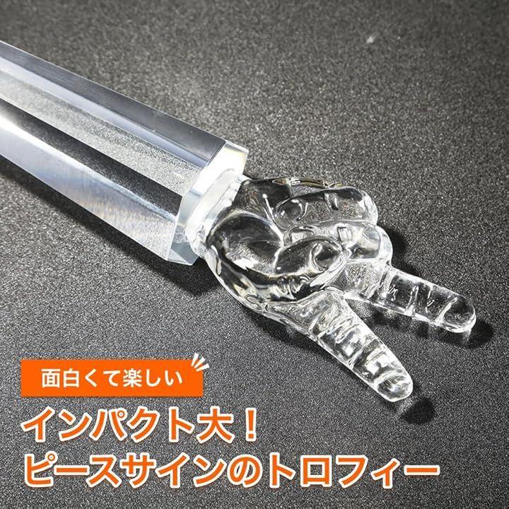 「インパクト大。ピーストロフィー」普通の優勝トロフィーより面白く楽しいユーモアあるピースサインのポーズをしたトロフィーはスポーツ大会、イベント、パーティー、ゲーム大会などの優勝者に贈呈するトロフィーとして笑いを誘うこと間違いなし。