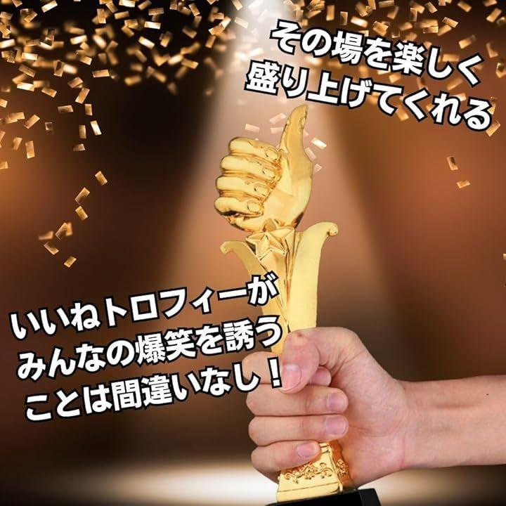 「インパクト大。いいねトロフィー」普通の優勝トロフィーより面白く楽しいユーモアあるいいねポーズをしたトロフィーはスポーツ大会、イベント、パーティー、ゲーム大会などの優勝者に贈呈するトロフィーとして笑いを誘うこと間違いなし。