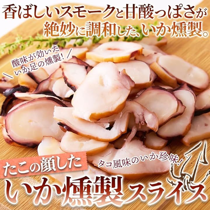 「香ばしいスモークと甘酸っぱさが 絶妙に調和した、いか燻製。