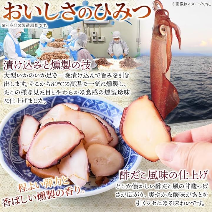 「たこのようで、実はいか..」程よい弾力に燻製の香ばしさ。
