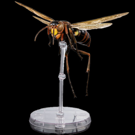 長い脚を垂らしながら優雅にゆっくりと飛ぶアシナガバチを全長約160mm、可動個所42箇所にて再現。ガシャポンオンライン版は特徴的でもある飛行状態で飾ることが出来るディスプレイスタンドも付属しています。
