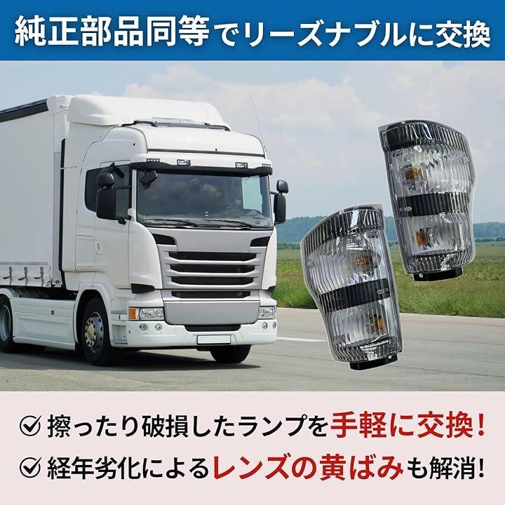 「交換のメリット」 視認性アップ:ウインカー点灯時の光がよりクリアになり、安全性向上。 外観リフレッシュ:黄ばみ・曇りを解消し、トラックの見た目を新車のように。 水漏れ防止:ひび割れによる結露・水溜まりを防ぎ、車検も安心。 簡単取付:純正同様のフィット感で、ポン付けOK。 「こんな方におすすめ」 ウインカーランプの黄ばみ・曇りが気になる方 破損・ひび割れで修理・交換を検討中の方 リーズナブルな社外品でメンテナンスコストを抑えたい方 DIYで簡単にトラックの外装をリフレッシュしたい方