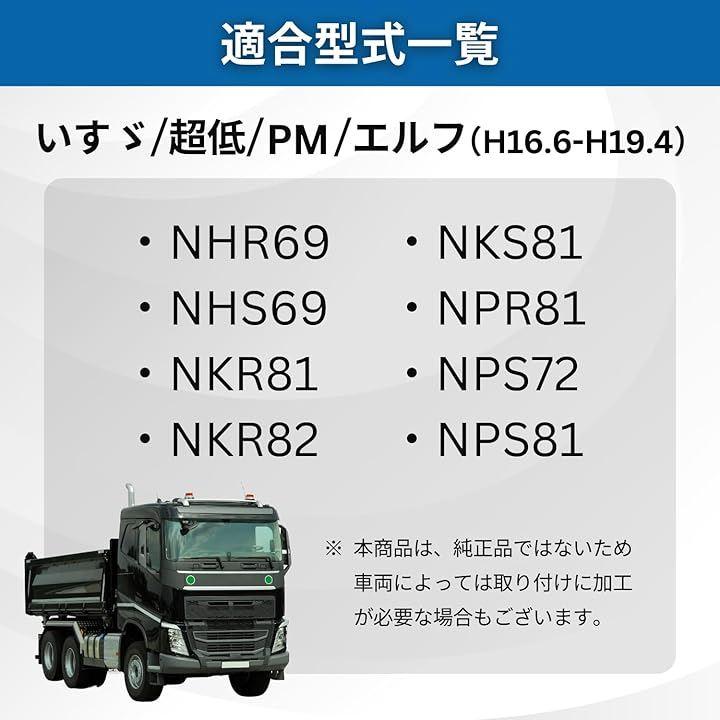 「いすゞ 超低PMエルフ(H16.6-H19.4)適合」 純正品同等のフィット感でDIY交換も簡単。 擦り傷・ひび割れ・破損時の修理・交換に最適 クリアレンズ仕様でシャープな印象に。