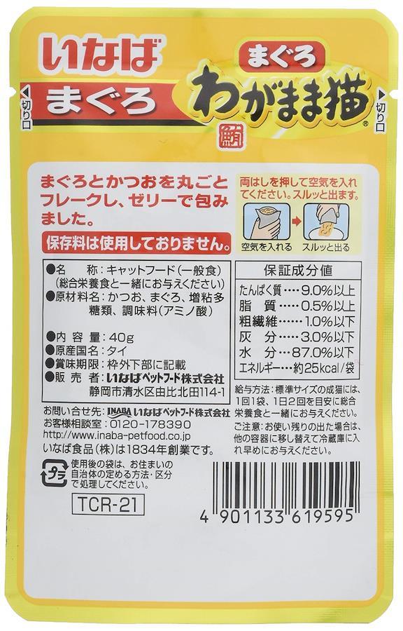 標準サイズの成猫には1回1袋、1日2袋を目安に総合栄養食と一緒にお与えください。