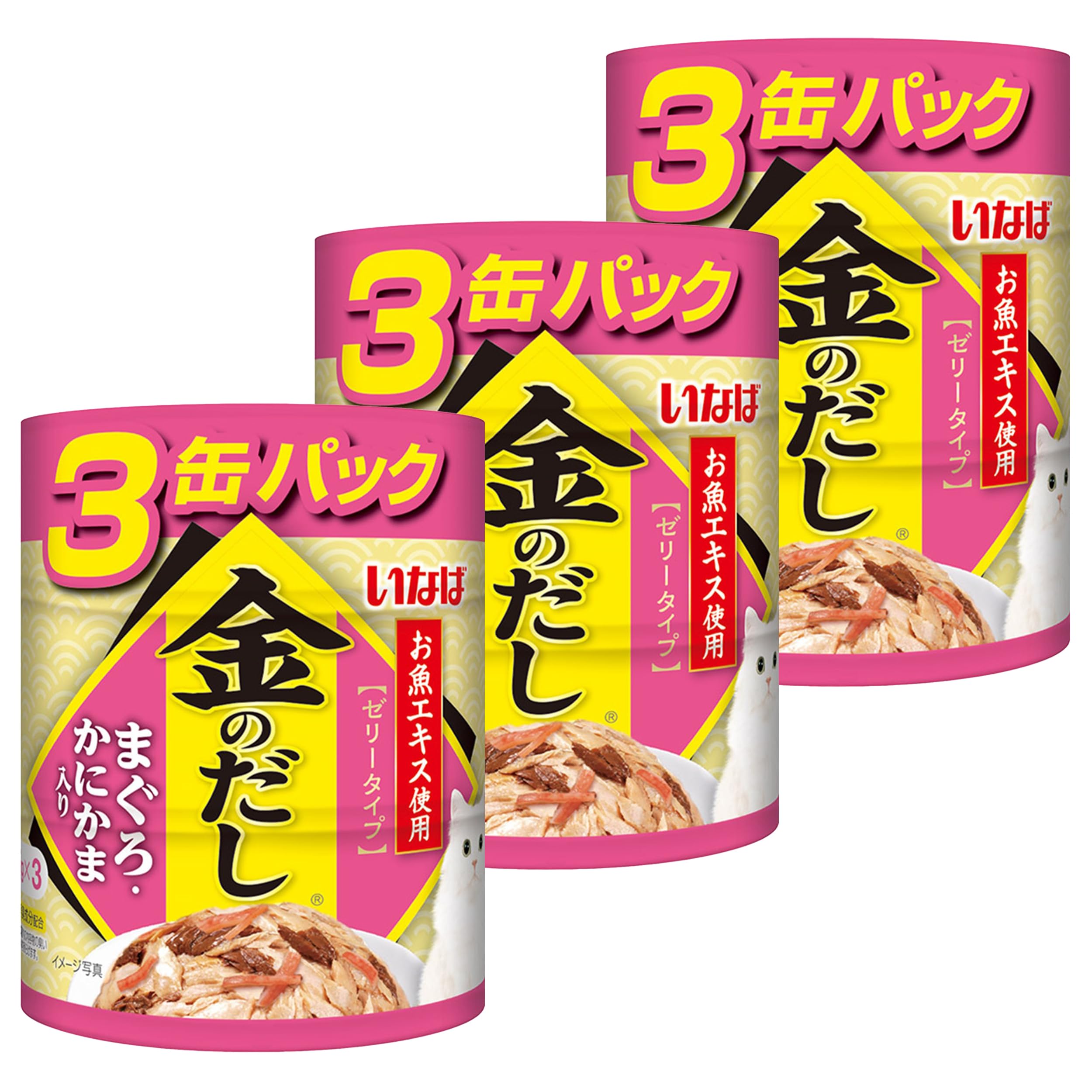 まぐろとかつおのフレークを使用。風味豊かなお魚エキスで仕上げました。3缶パック×3個セットで多頭飼いの家庭でも便利です。