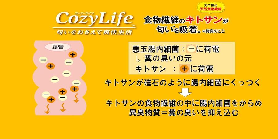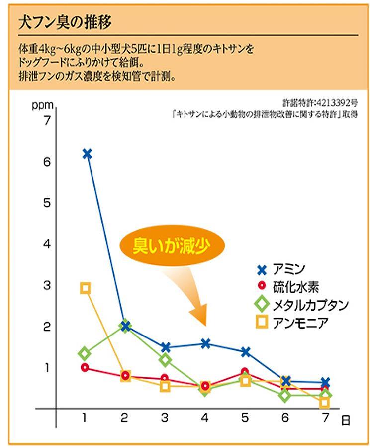 食物繊維のキトサンがフンの臭いを吸着します。乳酸菌1兆個(1袋あたり2,500億個)配合し、愛犬のお腹の調子を保ちます。緑茶消臭成分配合
