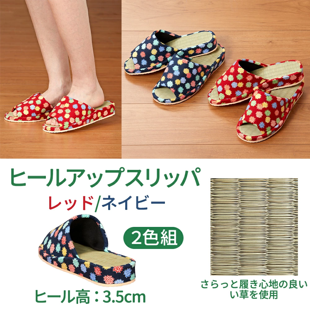 ヒールアップスリッパはレッド・ネイビーの2色組。
