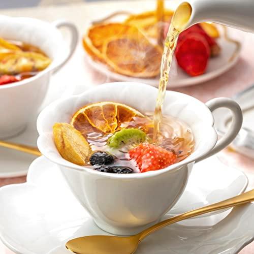 【ドライ工程・フルーツ素材のこだわり】 ドライフルーツはすべて日本産で無添加、砂糖不使用です。ドライフルーツは、「フリーズドライ」でなくてはなりません。フリーズドライは果実を凍らせ、水分を一気に抜くので食材の味を損なわず、色・味・香りもそのままの美味しさを保ちます。生や天日干しでは水分が多く紅茶が薄まり、おいしく飲めません。えいこく屋では、フリーズドライ工程ををわざわざ北海道の専門業者にお願いしています。新鮮な風味を逃がさず、ふっくらした食感を味わって頂くため、できるだけ大きくカットし見た目にも華やかに仕上げています。