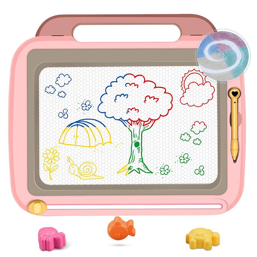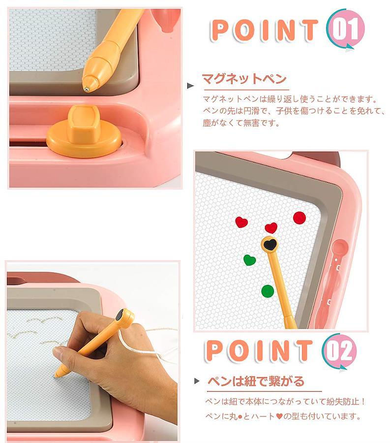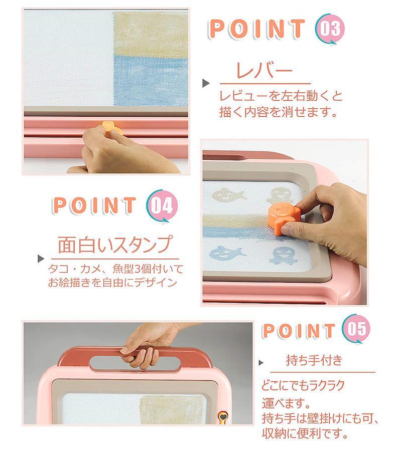 【カラフルお絵描きボード】 描いた絵が「青・赤・緑・黄色」の4色に色づくので、お絵かきや文字の練習時にお子様が楽しめます。お子様の想像力と考える力を伸ばすカラフルお絵描きボードです♪ 【何回も描いて消せる】消去レバーを動かすと、描いた絵や描いた文字を簡単に消すことができます。ペンと本体に糸が結ばれているので、ペンを失くす心配もありません。 【大画面・マグネットスタンプ付き】サイズ:約41*35CM。タコ・カメ、魚型3個付きでお絵描きを幅広くて自由にデザインを楽しむことができます! 【洋服や手が汚れる心配はありません!】ビッグのサイズでお子様の想像力を引き伸ばしてくれる、マグネットペンだから何度でも描けて汚れる心配もなし! 【持ち運び便利】持ち手が付いて、軽いので簡単に持ち運ぶことができます。スタント機能もあります。本製品はご購入日から6ヶ月の保証期間を提供いたします。万一保証期間内で故障がありましたら、ご連絡を頂けると迅速にご対応させていただきますのでご安心ください。[アカウントサービス]‐[注文履歴]‐[出品者に連絡する] の方でご連絡のほどお願いします。