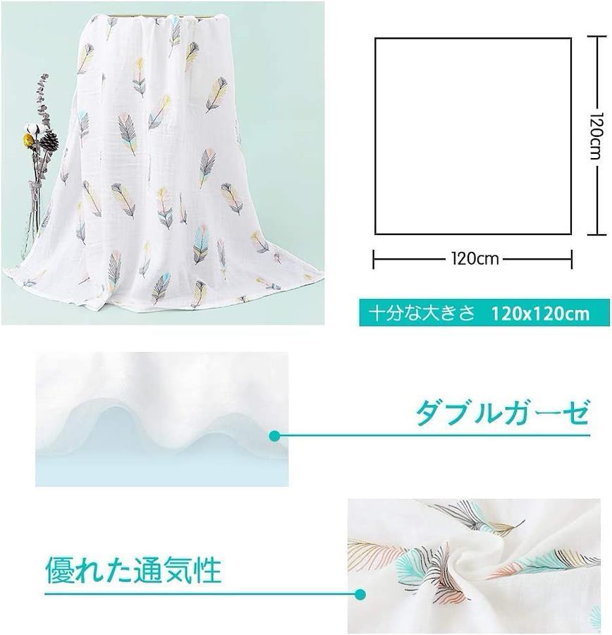『天然素材』天然コットン100%で肌触りがやさしくて、赤ちゃんの敏感なお肌を守ります。無蛍光生地なので、赤ちゃんに舐められても噛まれても衛生的な毛布です。 『通気性 抗菌性』空気を通しやすい天然カーぜなので、蒸れにくく心地よい状態を維持します。高品質の縫製と良質な素材で作られ、細菌防止、防静電気性、保温性に優れて、いつでも爽やかで快適に使用できます。 『ダブルガーゼ』ダブルガーゼで作られ、糸の太さを変えるのため、より多くの空気を含んで、冬は暖かく、夏は素早く汗を吸収します。一年を通じて使用できます。 『引換便利』軽量でコンパクトに折りたためばカバンなどに入れるので旅行する時ようとしてもお使いになれます。二枚セットの包装で、着替え、洗い替え便利です。 『広い使い道』授乳ケープ、ベビーカーの日よけカバー、バスタオル、寝袋、おむつ替えシーツなどとして使用することができます。絵柄は精美で子供の雰囲気に合わせて良いです。出産準備や出産祝いやベビーへのプレゼント等としておすすめです。