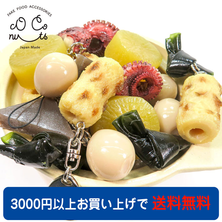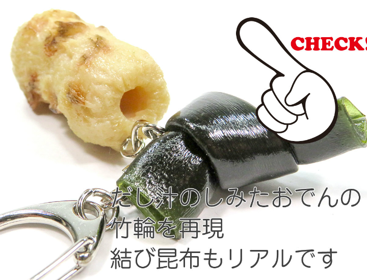 おでんB(昆布、竹輪)サイズ : 4cm×5cm×2.5cm重さ : 18g(キーホルダー:+5g、ストラップ:+1g)
