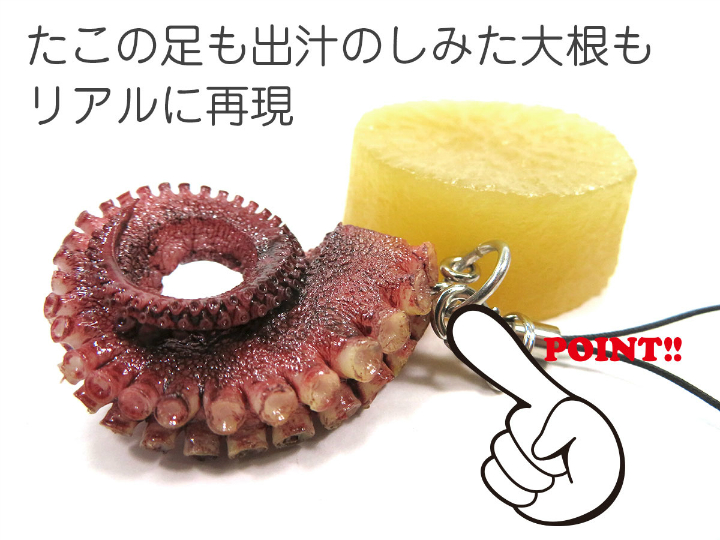 おでんC(大根、たこ)サイズ : 6.cm×4cm×1.5cm重さ : 25g(キーホルダー:+5g、ストラップ:+1g)