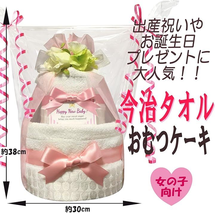 女の子の出産祝いに人気のギフト: 今治タオルを使ったおむつケーキは、その高品質で人気を集めており、男の子も喜ぶ贈り物として選ばれています。