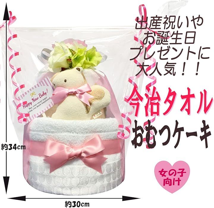 女の子の出産祝いに人気のギフト: 今治タオルを使ったおむつケーキは、その高品質で人気を集めており、男の子も喜ぶ贈り物として選ばれています。