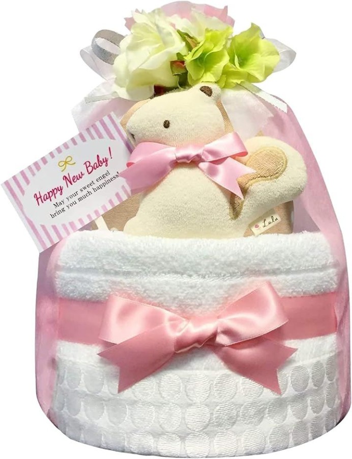出産祝いに最適な今治タオルのおむつケーキ: 世界的に評価されている今治タオルを使ったおむつケーキは、赤ちゃんへの特別な出産祝いとして人気があります。