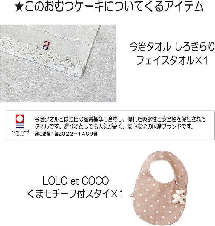 高品質な今治タオルとおむつのセット: 今治タオルは、その柔らかさと優れた品質で赤ちゃんの敏感な肌に安心して使用できるため、特別な出産祝いに最適です。